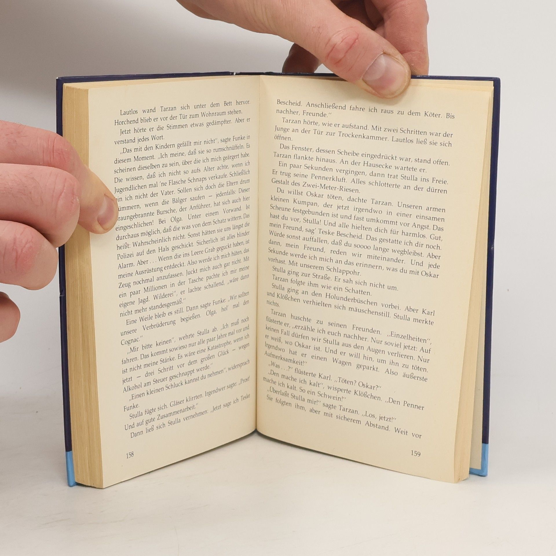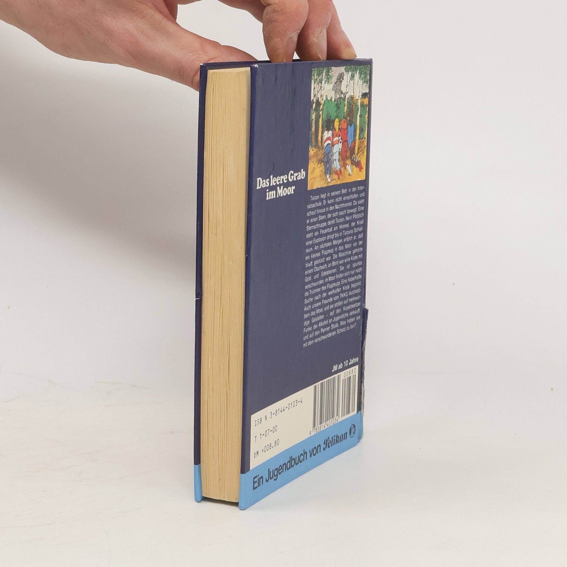 Tarzan liegt in seinem Bett in der Internatsschule. Er kann nicht einschlafen und schaut hinaus in den Nachthimmel. Da sieht er einen Stern, der sich rasch bewegt. Eine Sternschnuppe, denkt Tarzan. Nein! Plötzlich steht ein Feuerball am Himmel, der Knall einer Explosion dringt bis in Tarzans Schlafraum. Am nächsten Morgen erfährt er, daß ein kleines Flugzeug in das Moor vor der Stadt gestürzt war. Die Maschine gehörte einem Ölscheich, an Bord war eine Kiste mit Gold und Edelsteinen. Sie ist spurlos verschwunden, im Moor finden sich nur noch die Trümmer des Flugzeugs. Eine fieberhafte Suche nach der wertvollen Kiste beginnt. Auch unsere Freunde vom TKKG durchstöbern das Moor, und sie stoßen auf merkwürdige Gestalten - auf den Kioskbesitzer Funke, der Alkohol an Jugendliche verkauft, und auf den Penner Stulla. Was haben sie mit dem verschwundenen Schatz zu tun? Was Tarzan und seine Freunde erleben, als sie die Ganoven heimlich beobachten und gar noch Oskar verschwindet, Gabys treuer Cocker-Spaniel, das ist eine atemberaubende Geschichte.