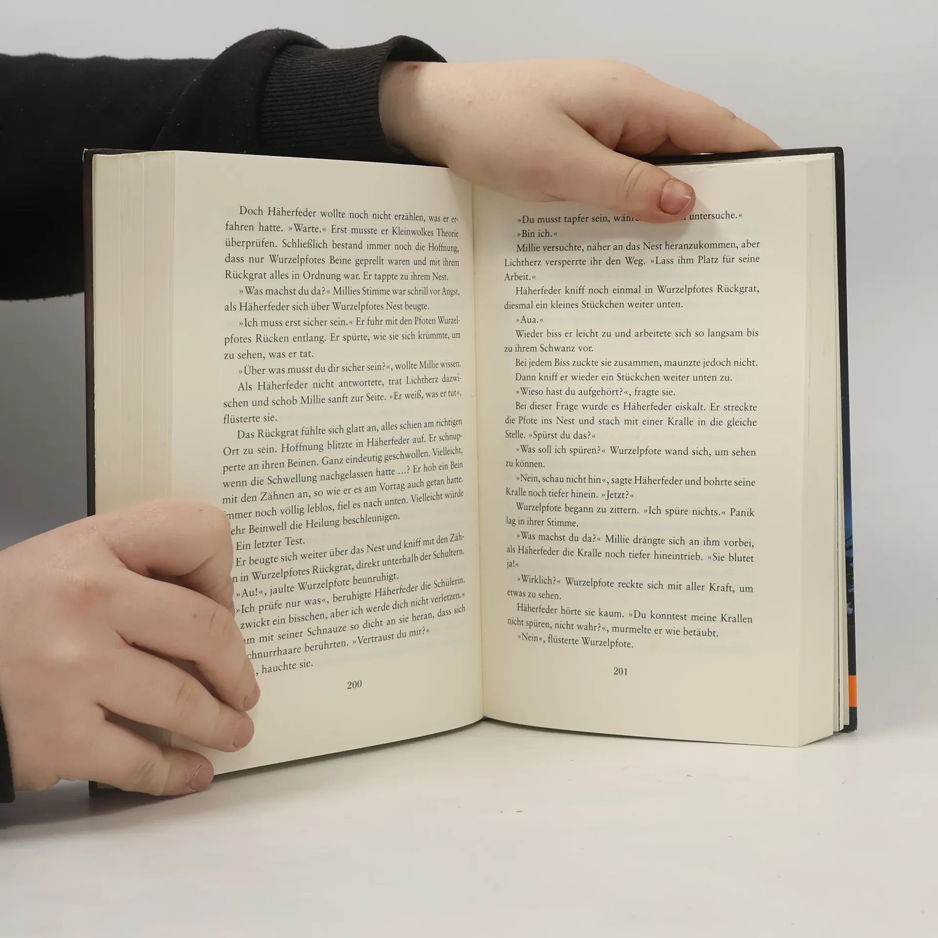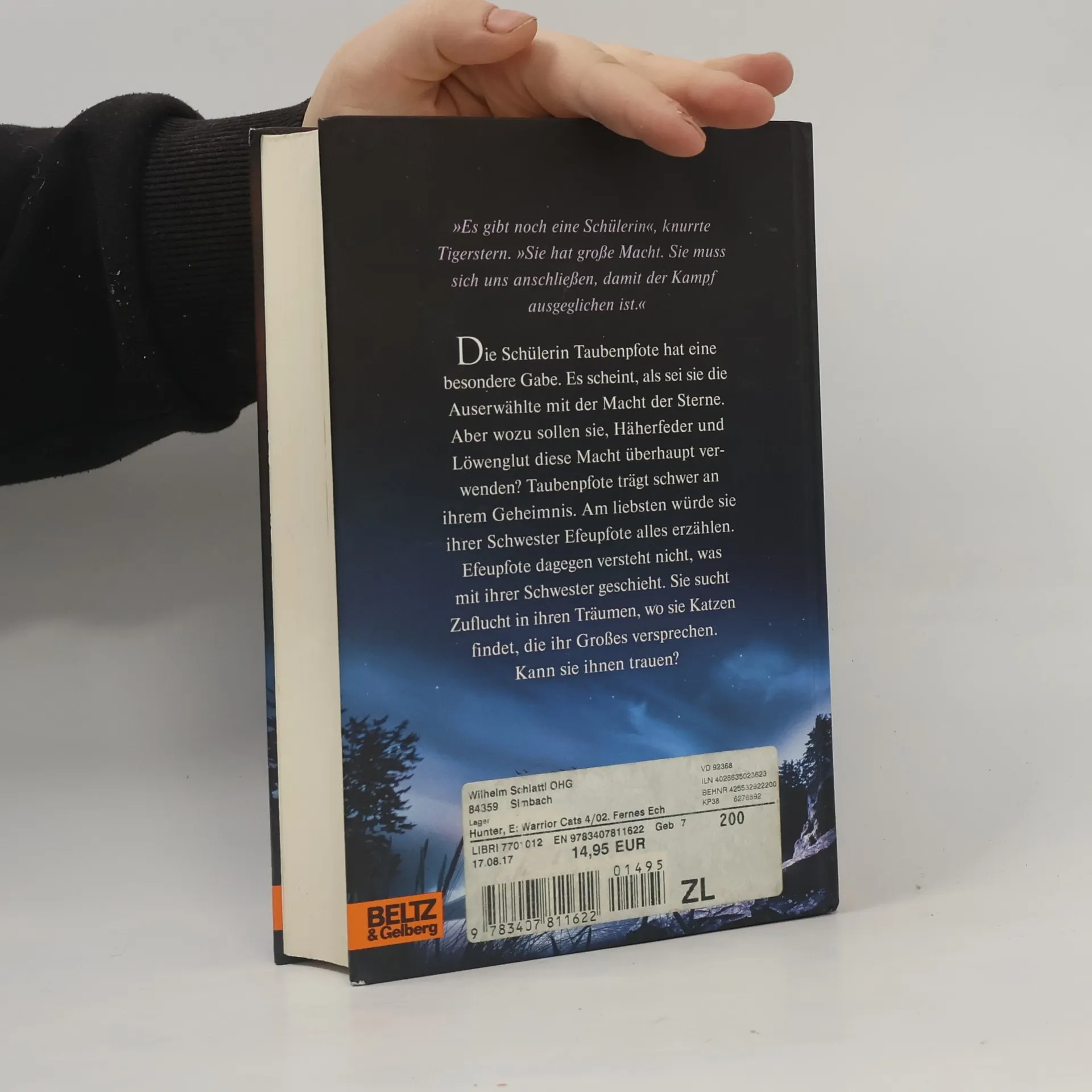 »Es gibt noch eine Schülerin«, knurrte Tigerstern. »Sie hat große Macht. Sie muss sich uns anschließen, damit der Kampf ausgeglichen ist.« Die Schülerin Taubenpfote hat eine besondere Gabe. Es scheint, als sei sie die Auserwählte mit der Macht der Sterne. Aber wozu sollen sie, Häherfeder und Löwenglut diese Macht überhaupt verwenden? Taubenpfote trägt schwer an ihrem Geheimnis. Am liebsten würde sie ihrer Schwester Efeupfote alles erzählen. Efeupfote dagegen versteht nicht, was mit ihrer Schwester geschieht. Sie sucht Zuflucht in ihren Träumen, wo sie Katzen findet, die ihr Großes versprechen. Kann sie ihnen trauen?