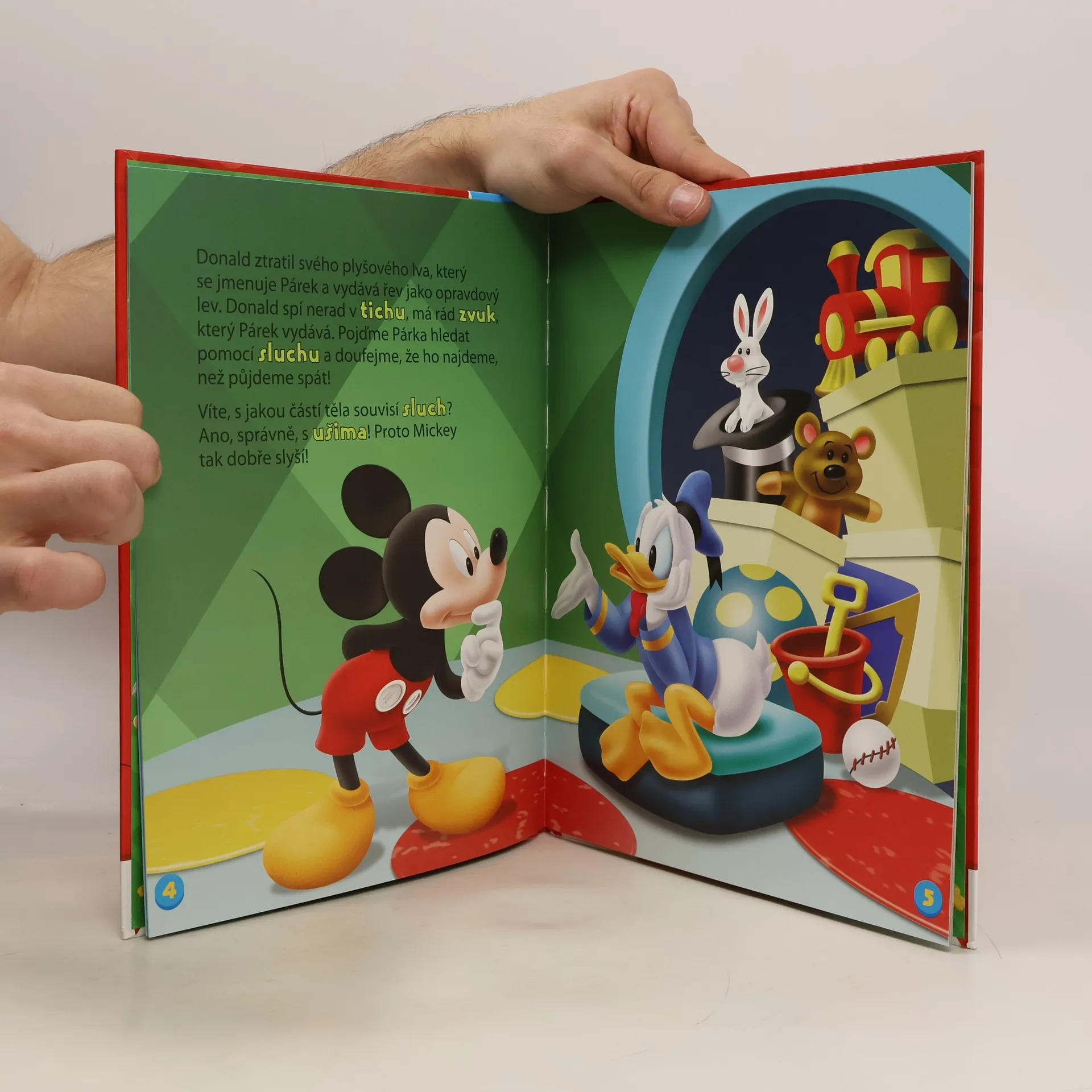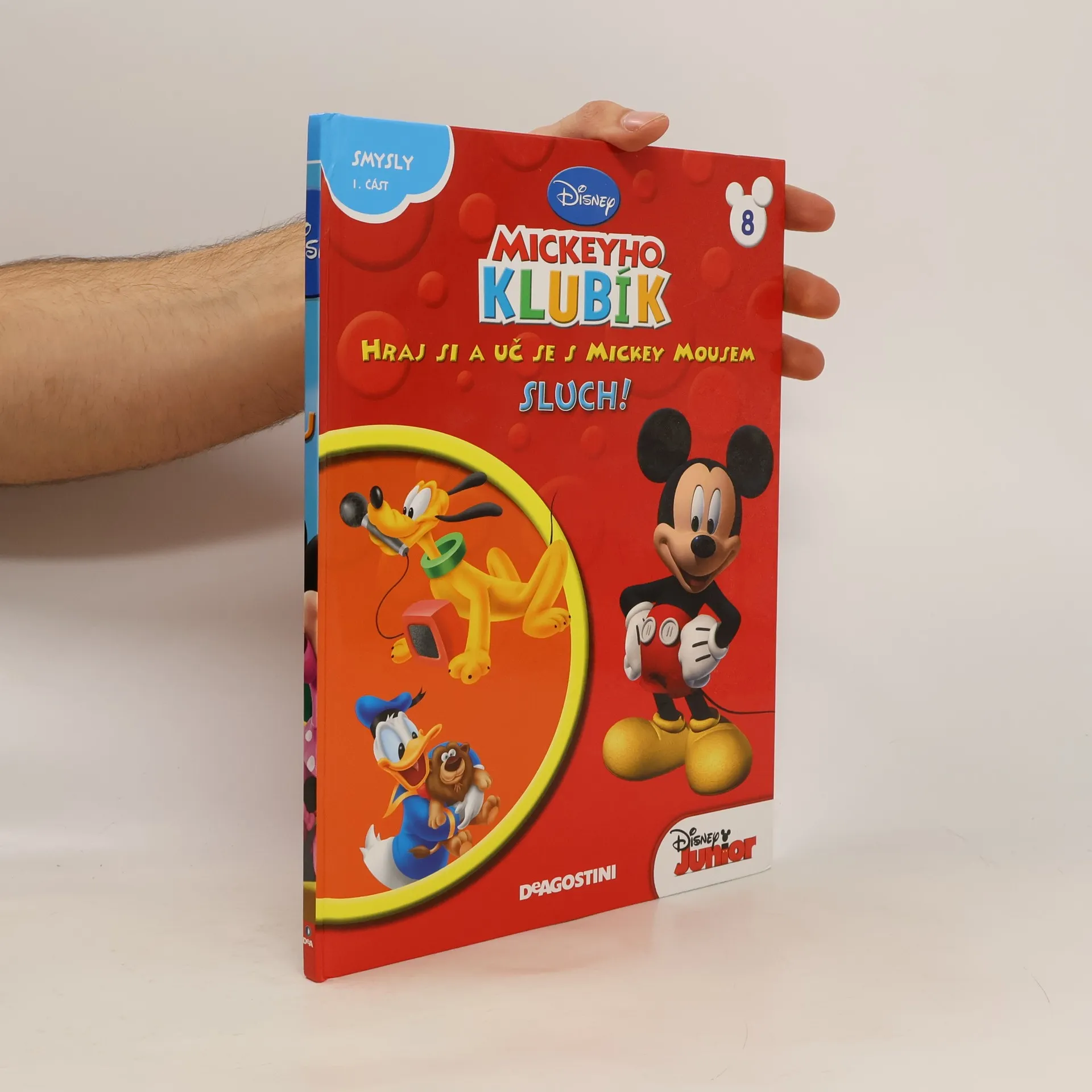Disney – Mickeyho klubík. Hraj si a uč se s Mickey Mousem. Smysly 1. část Sluch. V této knížečce najdete zábavný příbeh, v němž Donald ztratí svého oblíbeného plyšového lva a musí ho najít pomocí sluchu.