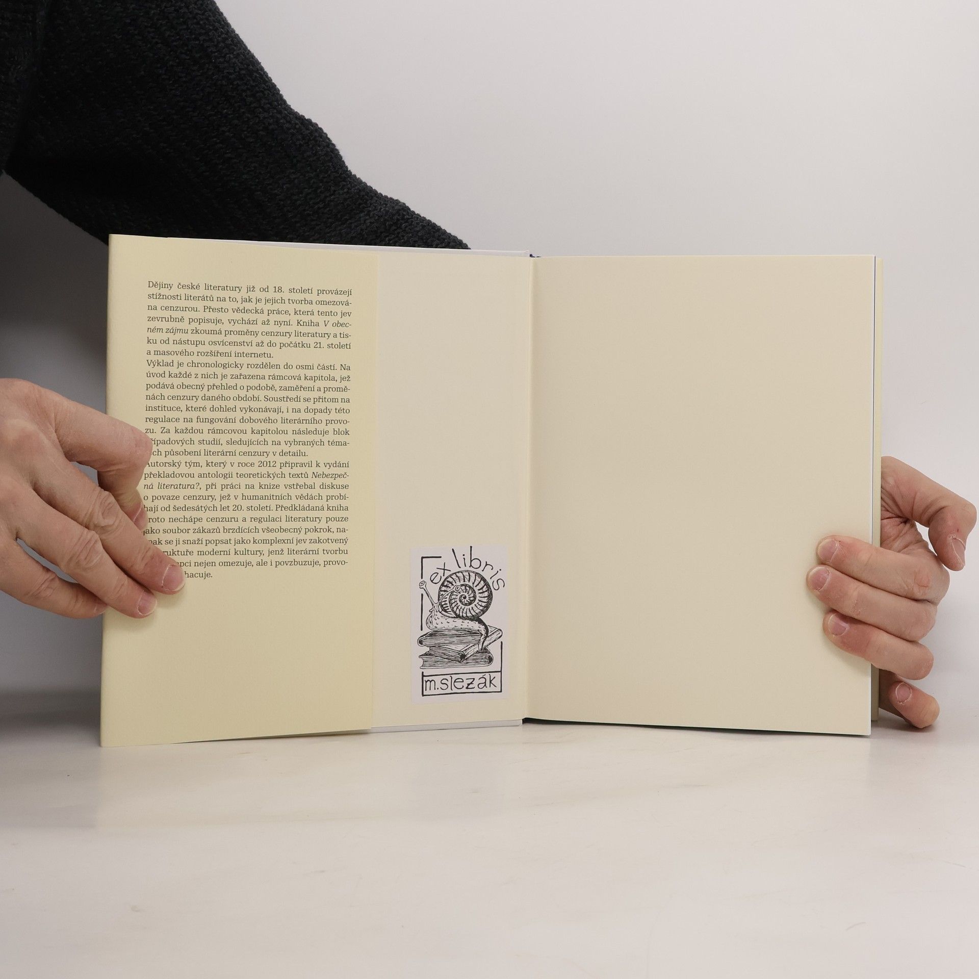 Dějiny české literatury již od 18. století provázejí stížnosti literátů na to, jak je jejich tvorba omezována cenzurou. Přesto vědecká práce, která tento jev zevrubně popisuje, vychází až nyní. Kniha V obecném zájmu zkoumá proměny cenzury literatury a tisku od nástupu osvícenství až do počátku 21. století a masového rozšíření internetu. Výklad je chronologicky rozdělen do osmi částí. Na úvod každé z nich je zařazena rámcová kapitola, která podává obecný přehled o podobě a proměnách cenzury daného období. Soustředí se přitom především na instituce, které cenzuru vykonávají, a na dopady této regulace na fungování dobového literárního provozu. Za každou rámcovou kapitolou následuje blok případových studií, které na vybraných tématech ukazují působení literární cenzury v detailu. Autorský tým, který v roce 2012 připravil k vydání překladovou antologii teoretických textů Nebezpečná literatura?, při práci na knize vstřebal diskuse o povaze cenzury, jež v humanitních vědách probíhají od šedesátých let 20. století. Předkládaná kniha proto nechápe cenzuru a regulaci literatury pouze jako soubor zákazů brzdících všeobecný pokrok, naopak se ji snaží popsat jako komplexní jev zakotvený ve struktuře moderní kultury, jenž literární tvorbu i její recepci nejen omezuje, ale i povzbuzuje, provokuje a obohacuje.