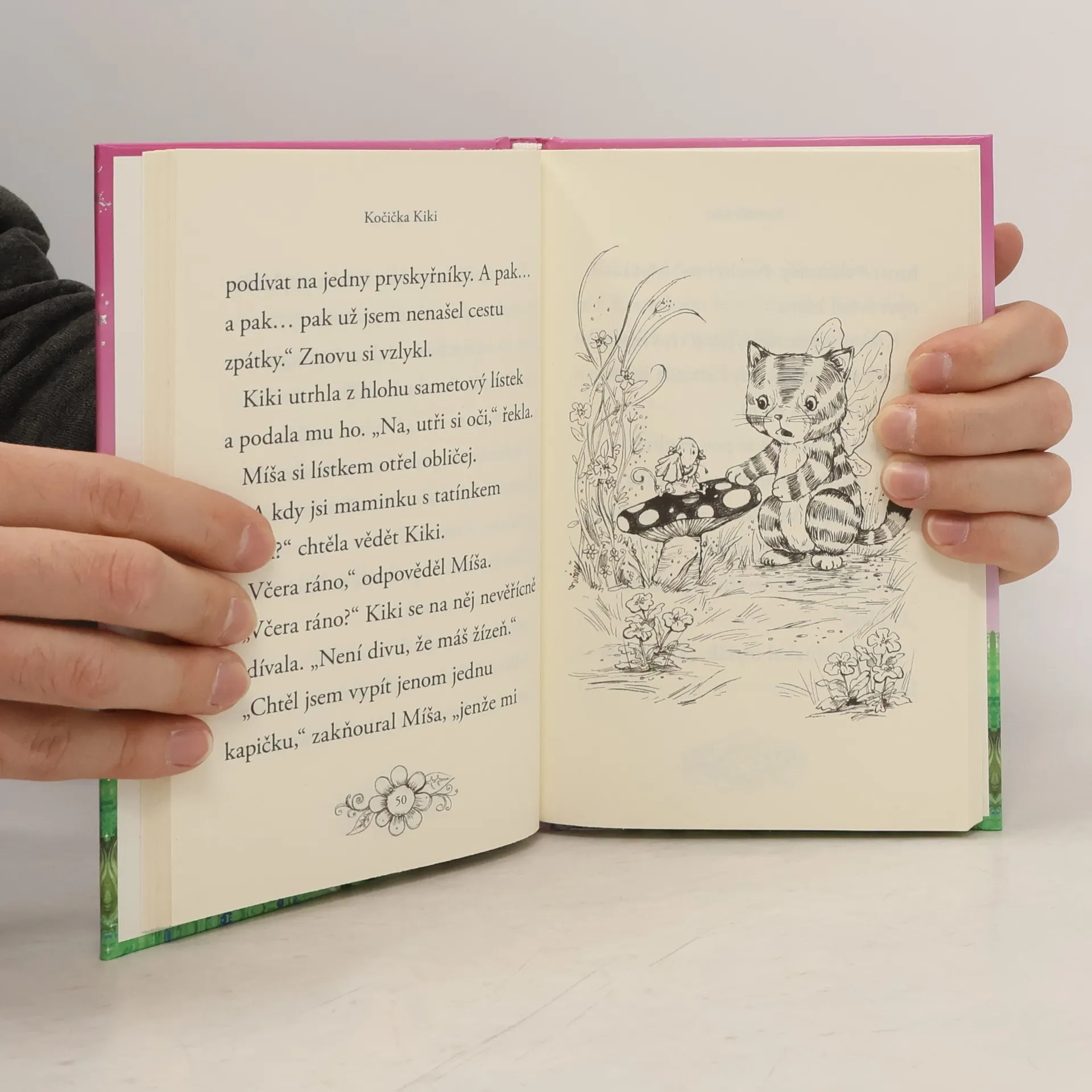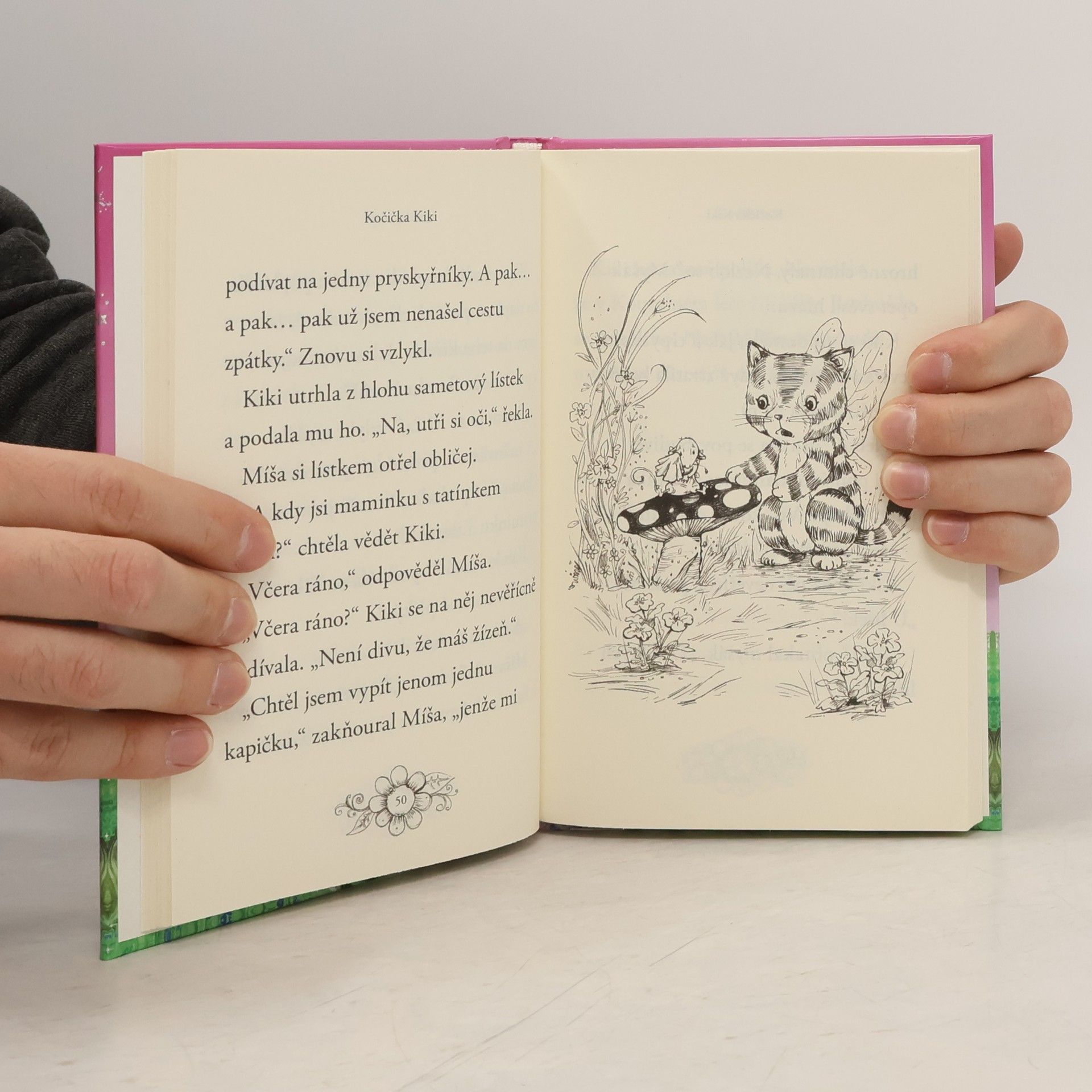 Vítejte v čarovném lese, o který se starají roztomilá zvířátka a vzduchem voní kouzla. Kočičí víla Kiki má krásný úkol. Každý den poletuje po lese a zdobí pavučiny blyštivými kapičkami rosy. Jednou potká uplakaného myšáčka, který se ztratil. A protože jsme v Kouzelném lese, kde si zvířátka pomáhají, otře mu slzičky a dají se do hledání. Podaří se Kiki dovést myšáčka domů? Napínavá cesta začíná… Laskavé příběhy pro nejmenší čtenáře o tom, že pomáhat, je krásné.
