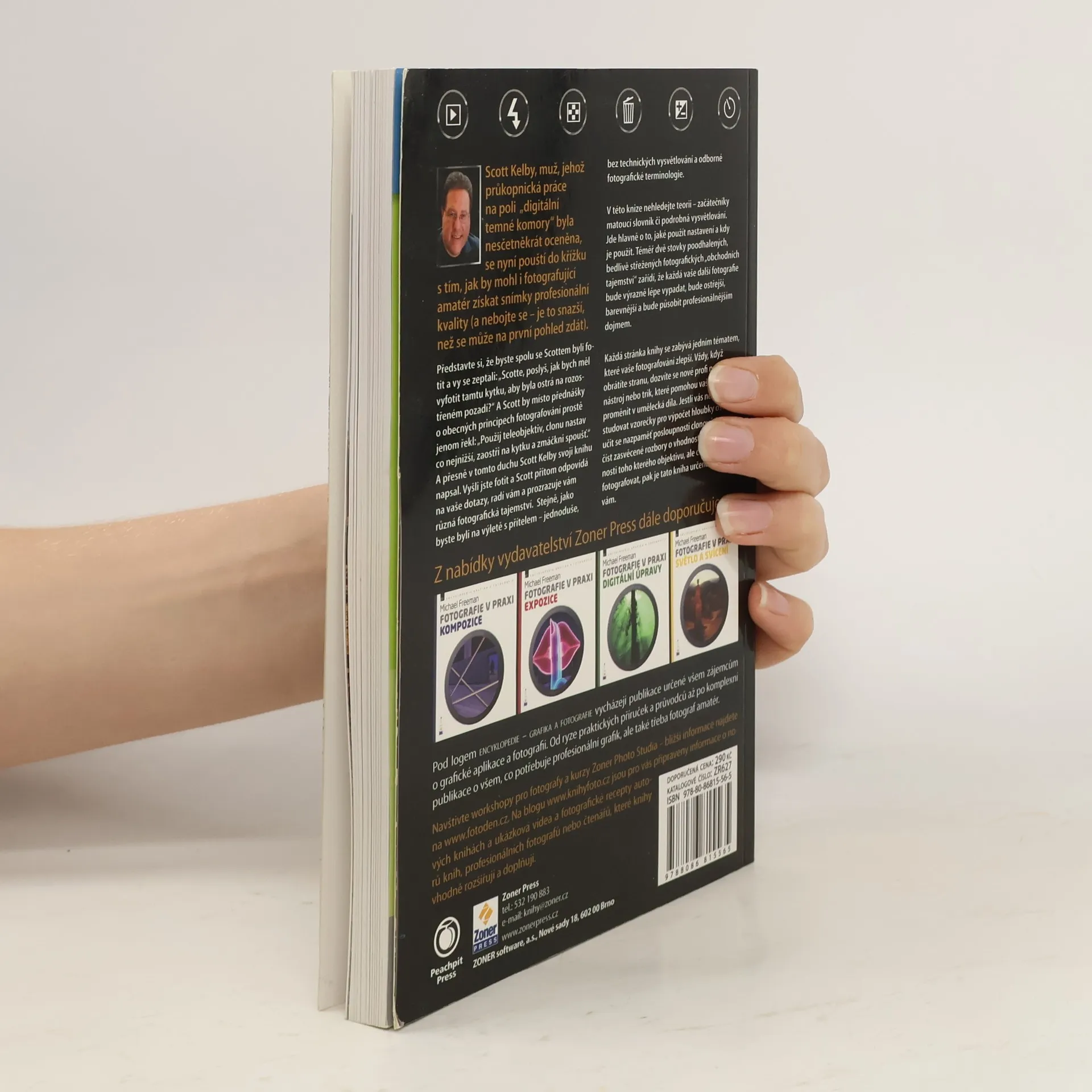 Scott Kelby je jedním z nejznámějších autorů píšících o Photoshopu a také o digitální fotografii. Je známý svým specifickým, pro někoho obtížně stravitelným, humorem. Staví před čtenáře fakta, informace i postupy bez ohledu na autority a jinými respektovaná klišé. V jeho podání ztrácí mnohé "digitální tajnosti" své tajemno a zůstává stravitelné jádro. Na rozdíl od jiných – skvělých – autorů se Kelby příliš netrápí vysvětlováním, řídí se spíše heslem: „Chceš vytvořit tohle? Udělej to tak a tak.“ Podobné je to i v této knize. Sám Kelby v ní říká: „...kdybychom spolu byli fotit a vy se mě zeptali: Scotte, jak bych měl vyfotit tamtu kytku, aby byla ostrá na rozostřeném pozadí? – neodkašlal bych si a nezačal s přednáškou o obecných principech fotografování. Prostě bych řekl: Použij teleobjektiv, clonu nastav co nejnižší, zaostři na kytku a zmáčkni spoušť“. Jedná se většinou o jednoduché rady, v rozsahu, který se vejde vždy na jednu stránku. Vždy jde ale o rady veskrze praktické, řešící s předstihem řadu problémů, do kterých se může začínající fotograf dostat. Scott Kelby se nesnaží hledat složité pokyny, jeho rady jsou přímé: chcete ostré fotografie krajiny – nespekulujte a pořiďte si stativ. Chcete se vyhnout problémům u portrétu – pracujte s co nejjednodušším pozadím. Většina věcí je v jeho podání jednoduchá a pokud budete po zvládnutí základů chtít pokračovat dále – na trhu najdete dost další literatury, která vás zavede dál a hlouběji do tajů fotografování. S touto knihou Scotta Kelbyho ale možná překonáte ty první překážky, které stojí mezi vámi, novým majitelem nového fotoaparátu a fotografováním.