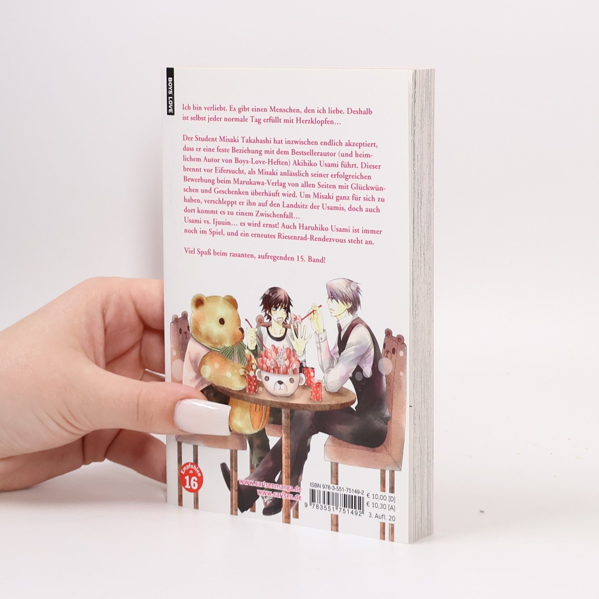 Der romantische Boys-Love-Klassiker - ein Must-Read für alle Yaoi Fans ab 16 Jahren! Ich bin verliebt. Es gibt einen Menschen, den ich liebe. Deshalb ist selbst jeder normale Tag erfüllt mit Herzklopfen… Der Student Misaki Takahashi hat inzwischen endlich akzeptiert, dass er eine feste Beziehung mit dem Bestsellerautor (und heimlichem Autor von Boys-Love-Heften) Akihiko Usami führt. Dieser brennt vor Eifersucht, als Misaki anlässlich seiner erfolgreichen Bewerbung beim Marukawa-Verlag von allen Seiten mit Glückwünschen und Geschenken überhäuft wird. Um Misaki ganz für sich zu haben, verschleppt er ihn auf den Landsitz der Usamis, doch auch dort kommt es zu einem Zwischenfall… Usami vs. Ijuuin… es wird ernst! Auch Haruhiko Usami ist immer noch im Spiel, und ein erneutes Riesenrad-Rendezvous steht an. Weitere Informationen: - Der Manga zum Anime-Hit auf Crunchyroll - Die Serie gilt als noch nicht abgeschlossen