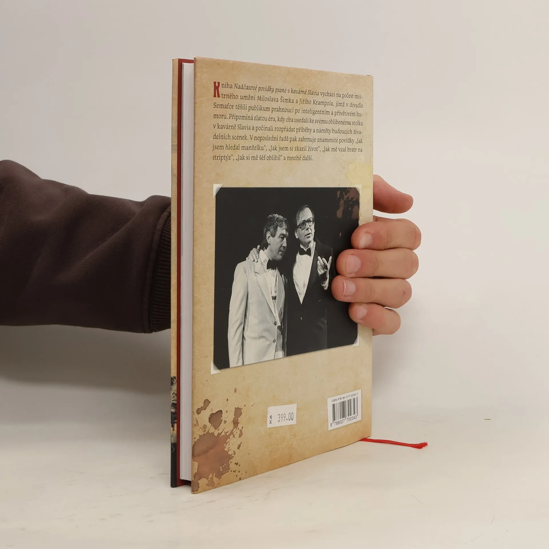 Divadlo Semafor vzniklo roku 1959 a za celou svoji historii pojalo nespočet významných osobností českého kulturního života: Jiřího Šlitra, Jiřího Grossmanna, Miloslava Šimka, Waldemara Matušku, Miroslava Horníčka, Evu Pilarovou, Karla Gotta, Miloše Kopeckého, Františka Filipovského, Karla Černocha, Ladislava Štaidla, Jiřího Krampola, Josefa Dvořáka anebo legendárního režiséra Jána Roháče. Herců bylo mnoho, her také – a kdo by byl tušil, že třeba Kytice se bude reprízovat až šestsetkrát? Kniha Nadčasové povídky psané v kavárně Slavia vychází na počest mistrného umění Miloslava Šimka a Jiřího Krampola, jímž v divadle Semafor těšili publikum prahnoucí po inteligentním a přívětivém humoru. Připomíná zlatou éru, kdy oba usedali ke svému oblíbenému stolku v kavárně Slavia a počínali rozpřádat příběhy a náměty budoucích divadelních scének. V neposlední řadě pak zahrnuje znamenité povídky „Jak jsem hledal manželku“, „Jak jsem si zkazil život“, „Jednou jsi dole, jednou nahoře“, „Jak mě vzal bratr na striptýz“, „Jak si mě šéf oblíbil“ a mnohé další.