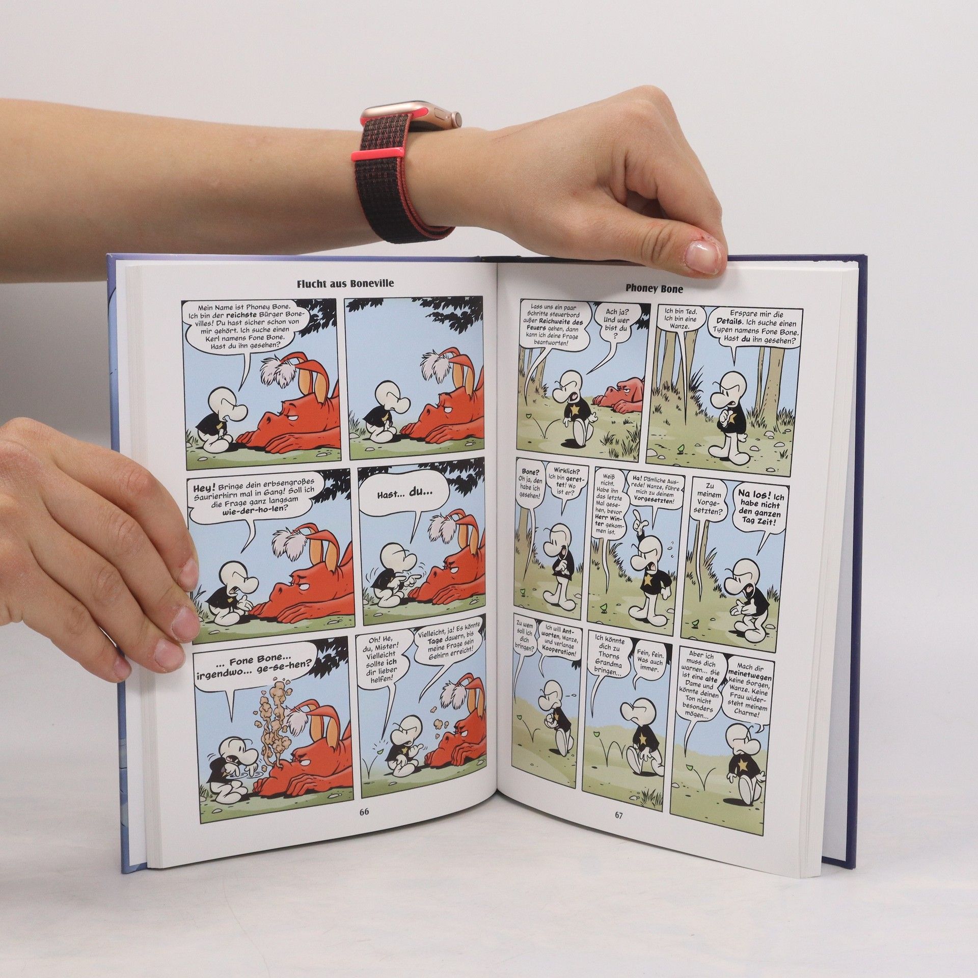 Nachdem sie aufgrund zwielichtiger Geschäfte aus Boneville geflohen sind, werden die drei Bones Fone Bone, Smiley Bone und Phoney Bone in der Einöde von einem Heuschreckenschwarm getrennt. Auf der Suche nach dem Rückweg in die Heimatstadt Boneville findet sich Fone Bone in einem tiefen Wald wieder, der mit wundersamen bis grausigen Kreaturen bevölkert ist, darunter der hilfreiche, sprechende, kleine Käfer Ted, die mutige Thorn, ein großer, Zigarette rauchender Drache und die bösen, dämlichen Rattenkreaturen, die sich oft in Streitereien um die Zubereitungsart ihrer potenziellen Opfer ergehen. Die hübsche Thorn bietet Fone Bone ihre Hilfe an, um seine Cousins zu finden und nach Boneville zurückzukehren. Sie nimmt Fone mit zum Farmhaus ihrer Großmutter, wo sie auch Phoney wieder treffen. Nach einigen Anfangsschwierigkeiten lässt Grandma Ben sie schließlich bleiben. Doch als Fone und Thorn im Wald sind, passiert etwas Unerwartetes: Die Rattenmonster unter dem direkten Befehl von dem Vermummten umzingeln Fone Bone und Thorn im Wald, während eine andere Horde das Farmhaus attackiert. Doch der Drache ist zur Stelle und rettet die Situation in letzter Minute…