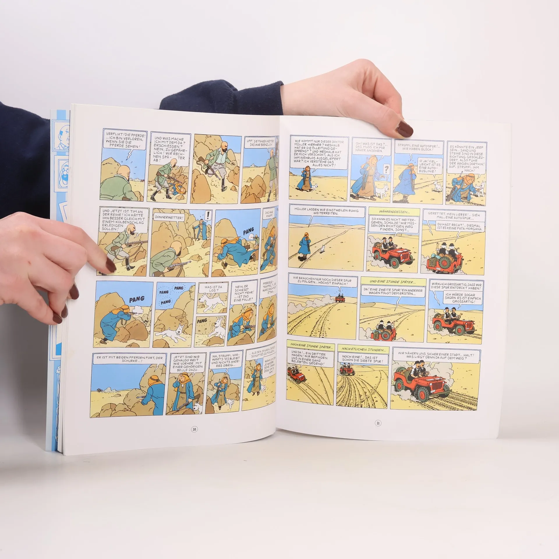 Tolle Abenteuer für Leseanfänger Die dramatische Verschlechterung der Benzinqualität bringt den Verkehr in den Industriestaaten zusehends zum Erliegen. Eine unglückliche Verkettung von Zufällen oder ein raffiniert geplantes Komplott? Bei seinen Nachforschungen kommt Tim in dem arabischen Emirat Khemed einer Gruppe von Saboteuren auf die Spur, die von einem alten Bekannten geführt wird. Währenddessen irren die Detektive Schulze und Schultze in einer grotesken Odyssee durch die Wüste... Ein Comic-Klassiker für Kinder und Erwachsene Die Comichefte von Tim und Struppi sind klassische Abenteuergeschichten , die für Kinder ab 8 Jahren geeignet sind. Sie sind spannend, fantasievoll und deshalb auch für Erstleser zum Lesen lernen genau das Richtige. Auf der ganzen Welt lesen Kinder die Abenteuer von Tim und Struppi, eine der bekanntesten Comic-Serien überhaupt. Seit über 90 Jahren begeistern Tim und seine Freunde Leser aller Altersklassen, die gespannt verfolgen, wie Tim, Struppi, Kapitän Haddock, Professor Bienlein oder Schultze und Schulze fiesen Typen das Handwerk legen. Wie flucht Käpt'n Haddock immer so gern? Mast- und Schotbruch! Auf ins Abenteuer!