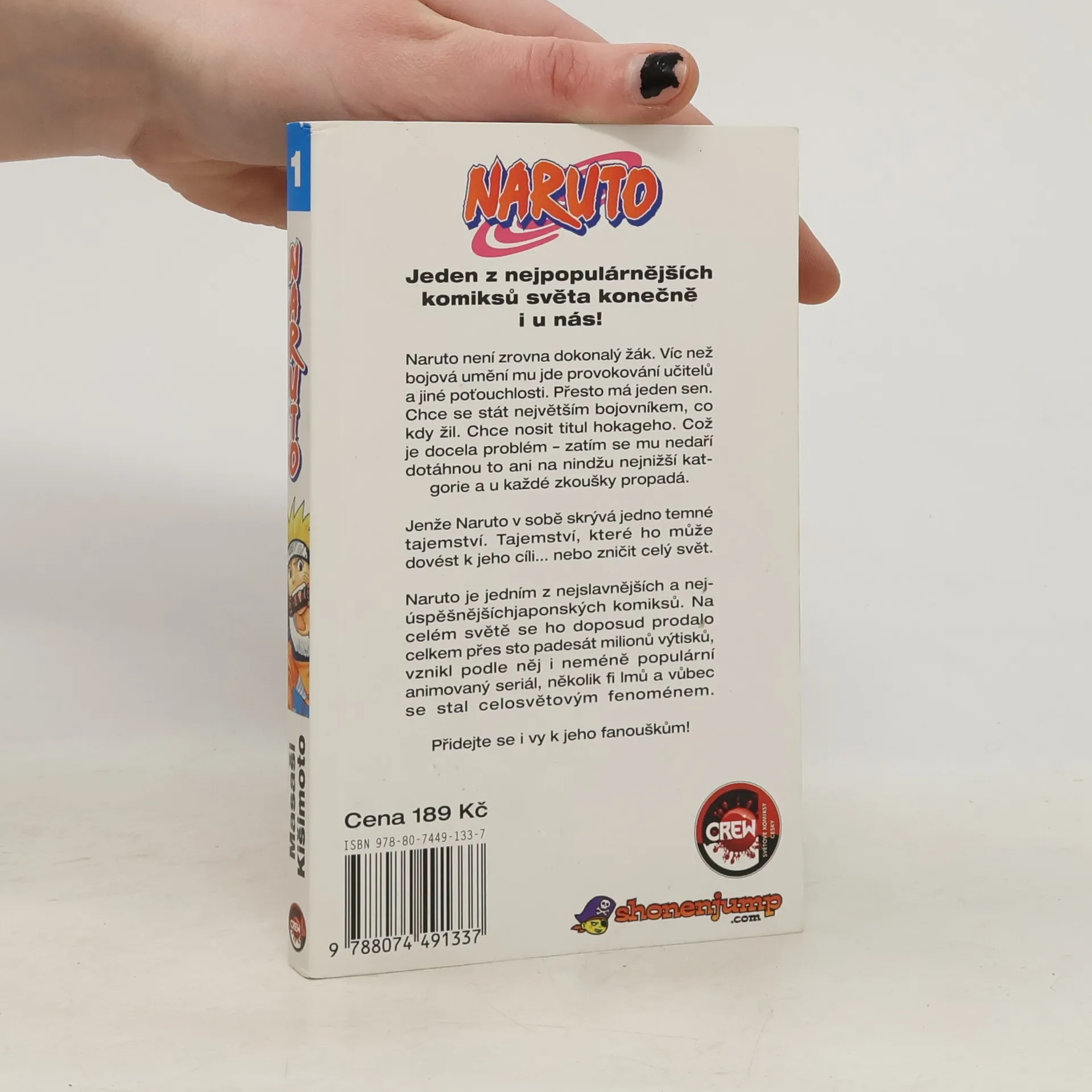 Jeden z nejpopulárnějších komiksů světa konečně i u nás! Naruto není zrovna dokonalý žák. Víc než bojová umění mu jde provokování učitelů a jiné poťouchlosti. Přesto má jeden sen. Chce se stát největší bojovníkem, co kdy žil. Chce nosit titul hokageho. Což je docela problém – zatím se mu nedaří dotáhnou to ani na nindžu nejnižší kategorie a u každé zkoušky propadá. Jenže Naruto v sobě skrývá jedno temné tajemství. Tajemství, které ho může dovést k jeho cíli... nebo zničit celý svět. Naruto je jeden z nejslavnějších a nejúspěšnějších japonských komiksů. V zemi vycházejícího slunce se ho doposud prodalo celkem už více než 100 milionů výtisků, vznikl podle něj i neméně populární animovaný seriál, několik filmů a vůbec se stal
