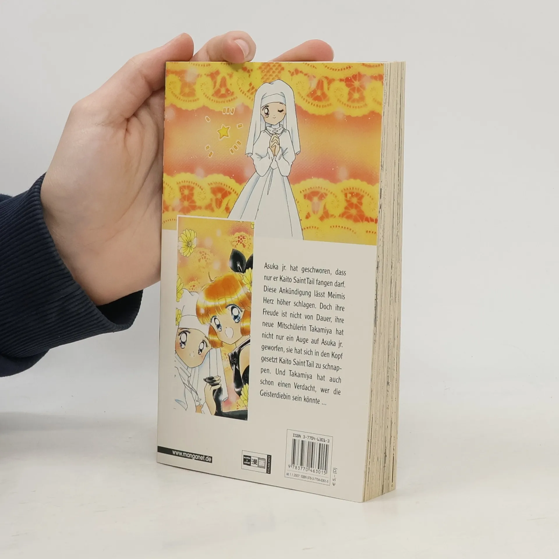 Die Diebin mit dem Zopf „Verzeih, Herr, dass es weder Geheimnis noch Trick gibt! One, two, three!“ Mit diesen Worten verwandelt sich die Achtklässlerin Meimi Haneoka nachts in Kaito Saint Tail, die im Auftrag ihrer Freundin Seira Menschen aus der Klemme hilft. Meimis Mitschüler Daiki Asuka, der von allen nur Asuka jr. genannt wird, hat sich geschworen, Saint Tail auf frischer Tat zu schnappen. Aber Meimi bietet ihm die Stirn und kündigt ihre Taten sogar vorher an. Als Saint Tail bei einem ihrer Raubzüge in Schwierigkeiten gerät, hilft ihr Asuka jr. aus der Klemme und es kommt, wie es kommen muss: Maimi verliebt sich in ihn. Umso trauriger ist sie, dass Asuka sie tagsüber keines Blickes würdigt. Aber seine Ankündigung, dass „nur er und niemand sonst“ Saint Tail fangen darf, lässt ihr Herz höher schlagen.