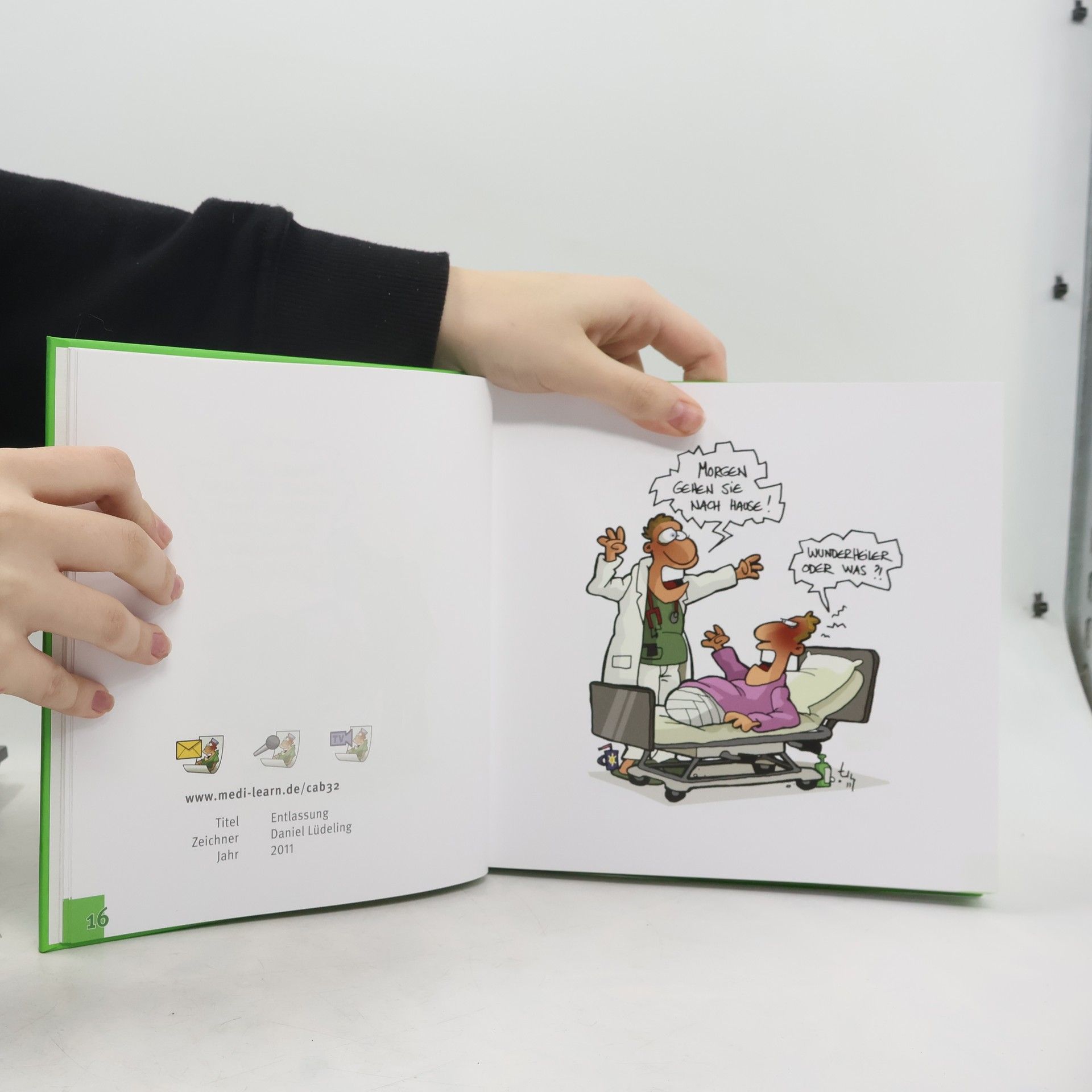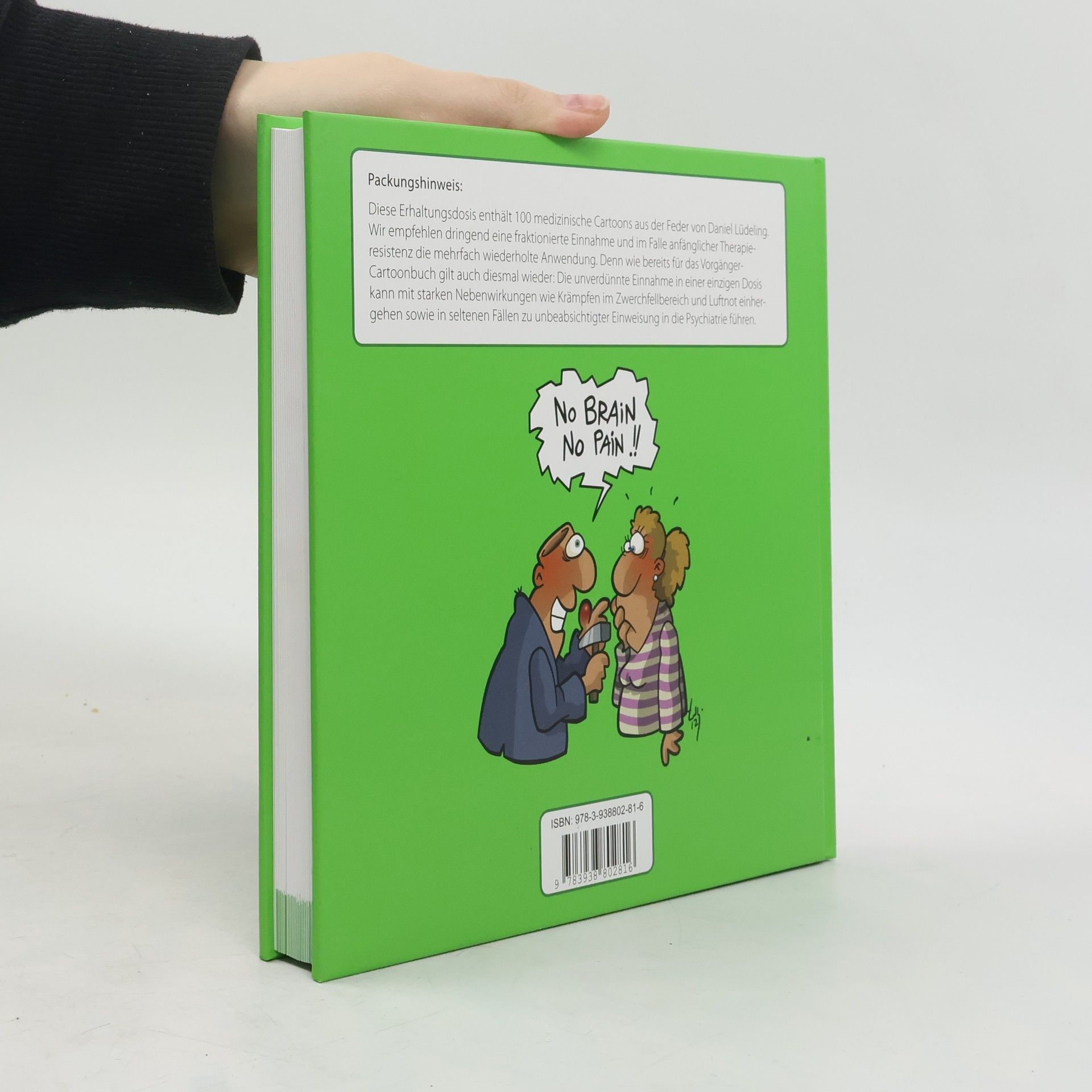 Packungshinweis: Diese Erhaltungsdosis enthält 100 medizinische Cartoons aus der Feder von Daniel Lüdeling. Wir empfehlen dringend eine fraktionierte Einnahme und im Falle anfänglicher Therapieresistenz die mehrfach wiederholte Anwendung. Denn wie bereits für das Vorgänger- Cartoonbuch gilt auch diesmal wieder: Die unverdünnte Einnahme in einer einzigen Dosis kann mit starken Nebenwirkungen wie Krämpfen im Zwerchfellbereich und Luftnot einhergehen sowie in seltenen Fällen zu unbeabsichtigter Einweisung in die Psychiatrie führen.