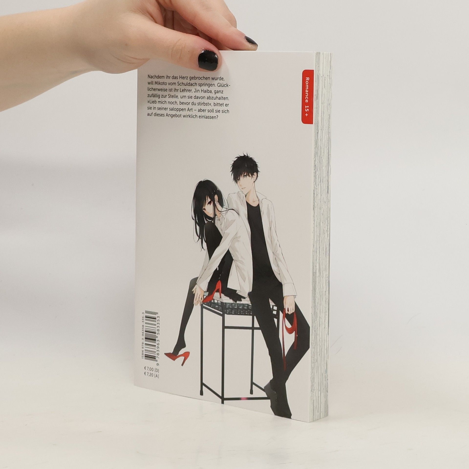 Nachdem ihr das Herz gebrochen wurde, will Mikoto vom Schuldach springen. Glücklicherweise ist ihr Lehrer Jin Haiba ganz zufällig zur Stelle, um sie davon abzuhalten. »Lieb mich noch, bevor du stirbst«, bittet er sie in seiner saloppen Art – aber soll sie sich auf dieses Angebot wirklich einlassen?