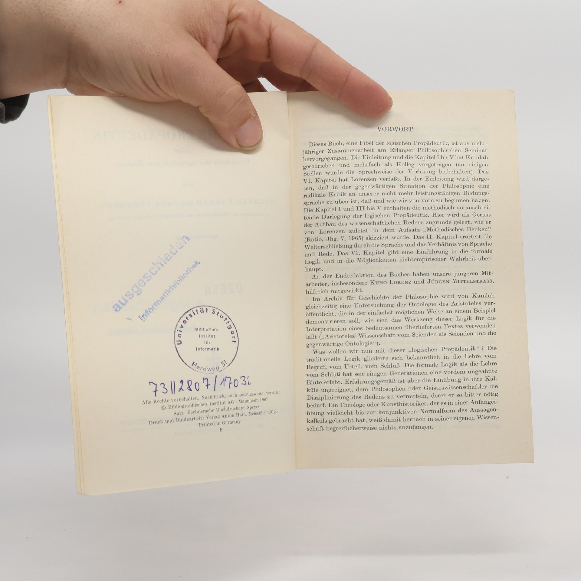 Logische Propädeutik, Wilhelm Kamlah, Paul Lorenzen