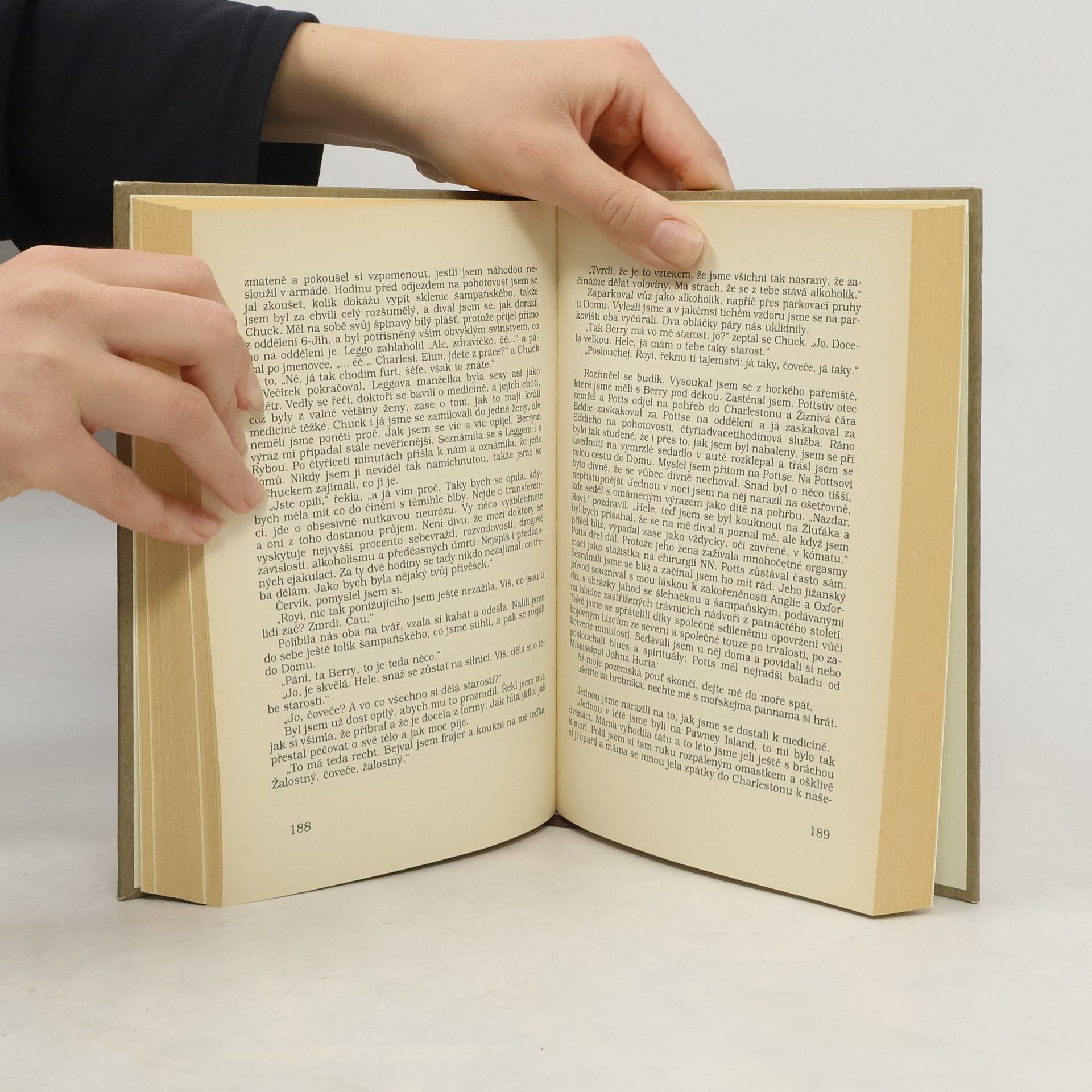 Román z lékařského prostředí s výraznými autobiografickými prvky, který při svém uvedení na americký knižní trh v roce 1978 způsobil doslova poprask v literárních i medicínských kruzích a je od té doby přirovnáván k Hellerovu románu Hlava 22 – tak jako Heller demýtizoval armádu, tak Shem píchl do vosího hnízda amerického zdravotnictví. Vylíčení poměrů v severoamerické nemocnici by se mohlo zdát příliš kruté, příliš syrové, příliš šokující, příliš přesexualizované, příliš přitažené za vlasy... je ale pravdivé. A dlužno podotknout, že není nijak zvlášť specifické jen pro americké poměry.