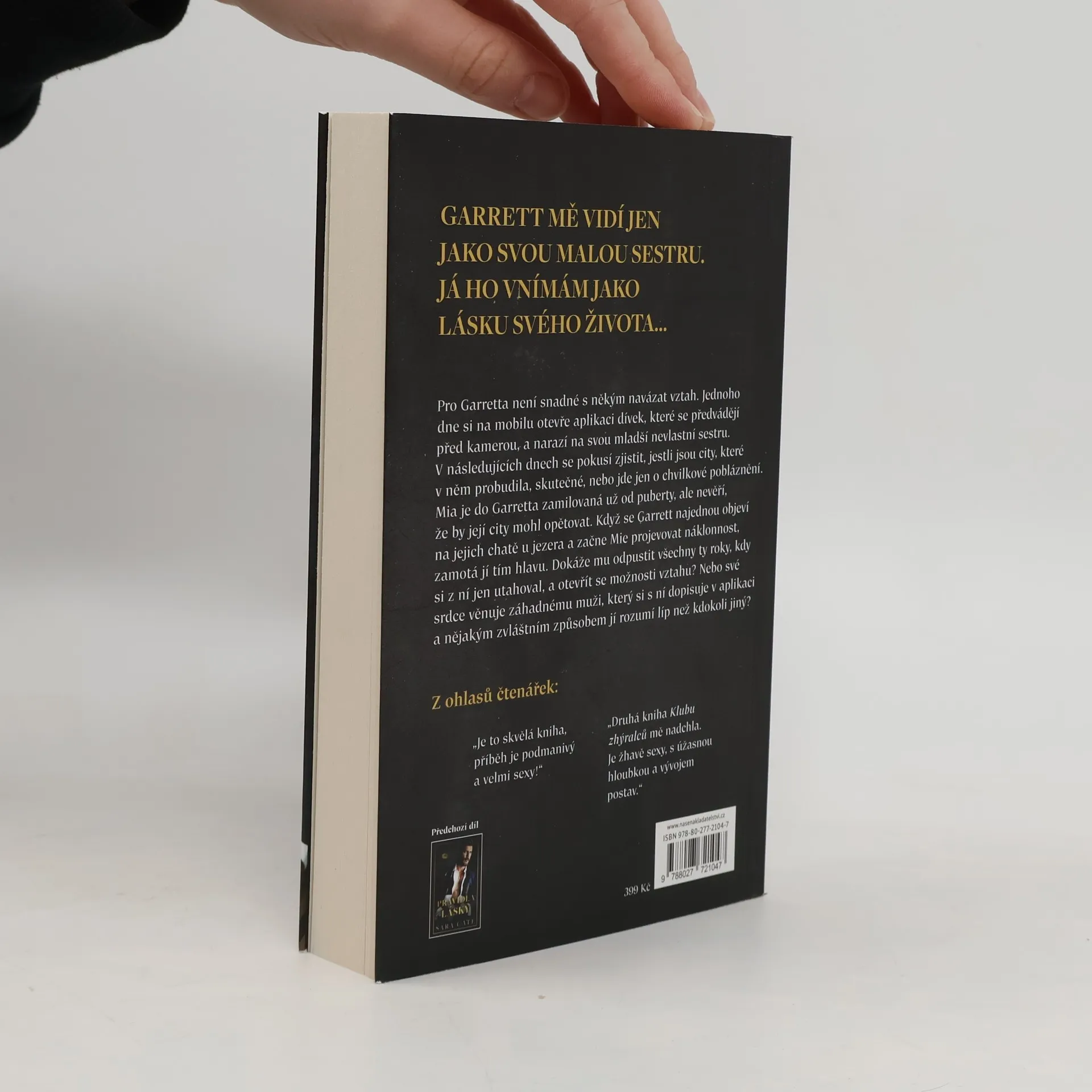 Jsem voyeur, což znamená, že se rád dívám. V mé práci je to hodně důležité. Jako jednomu ze čtyř vlastníků Klubu zhýralců mi nevadí jen přihlížet. K téhle práci jsem byl stvořený a nejradši ji dělám sám. Až do chvíle, kdy narazím na jistou aplikaci s holkami před kamerou a začnu sledovat video té jediné z nich, kterou jsem nikdy neměl vidět – své nevlastní sestry. Plynou z toho tři velké problémy: zaprvé se s Miou nemůžeme vystát. Zadruhé vůbec netuší, že muž na druhém konci videa jsem ve skutečnosti já. A zatřetí jsem na tom teď závislý – na aplikaci i na ní. Mia způsobila, že chci dělat věci, které jsem už nikdy dělat nechtěl. Mám nutkání se jí otevřít a vybudovat si s ní vztah. Začínám do ní být zamilovaný, ale ona se mezitím váže k záhadnému muži, za kterého se v aplikaci vydávám. Pokud to chci napravit, musím udělat víc než se na ni jen dívat. Jak daleko zajdu, aby podlehla mému svůdnému pohledu?