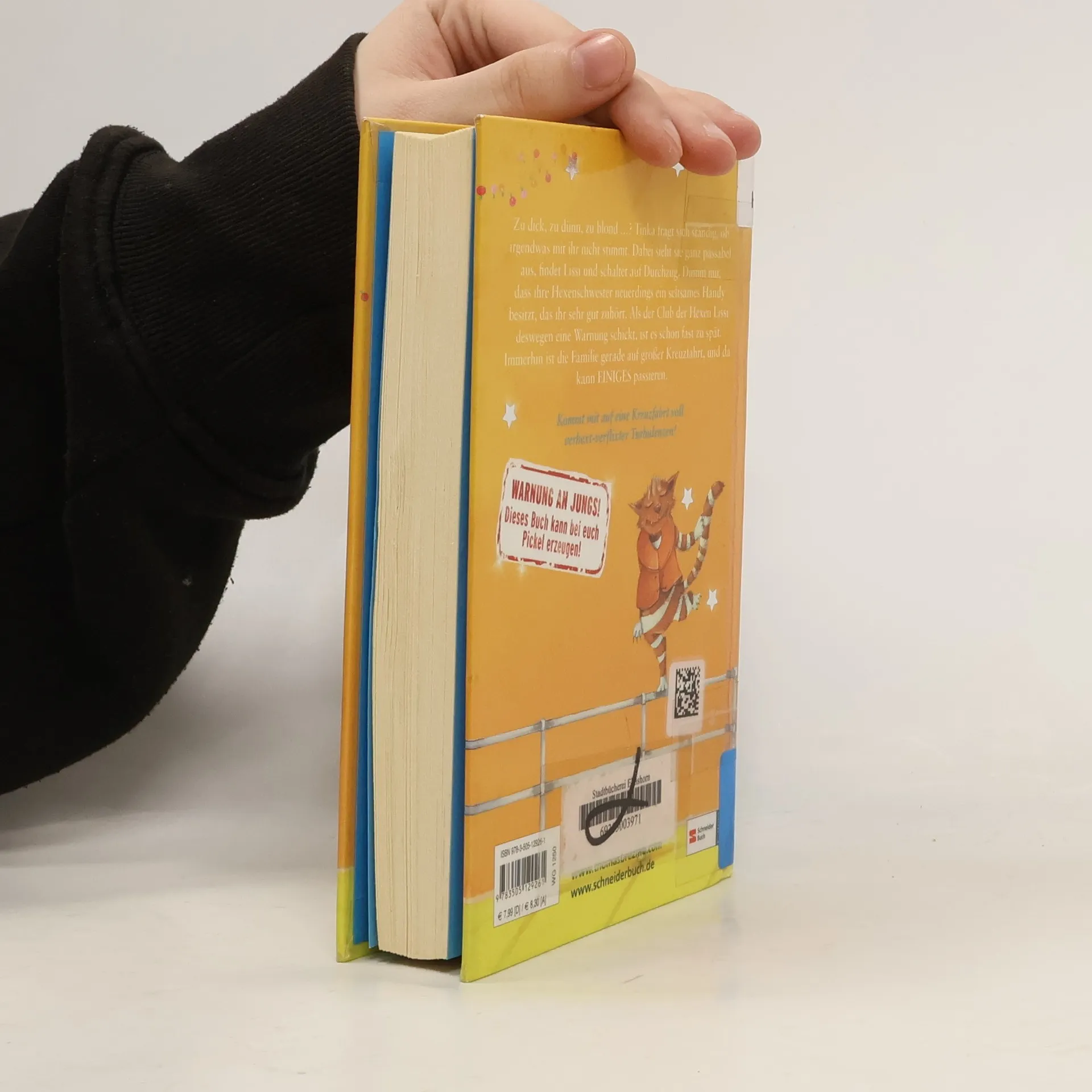 Zu dick, zu dünn, zu blond …? Tinka fragt sich ständig, ob irgendwas mit ihr nicht stimmt. Dabei sieht sie ganz passabel aus, findet Lissi und schaltet auf Durchzug. Dumm nur, dass ihre Hexenschwester neuerdings ein seltsames Handy besitzt, das ihr sehr gut zuhört. Als der Club der Hexen Lissi deswegen eine Warnung schickt, ist es schon fast zu spät. Immerhin ist die Familie gerade auf großer Kreuzfahrt, und da kann EINIGES passieren.