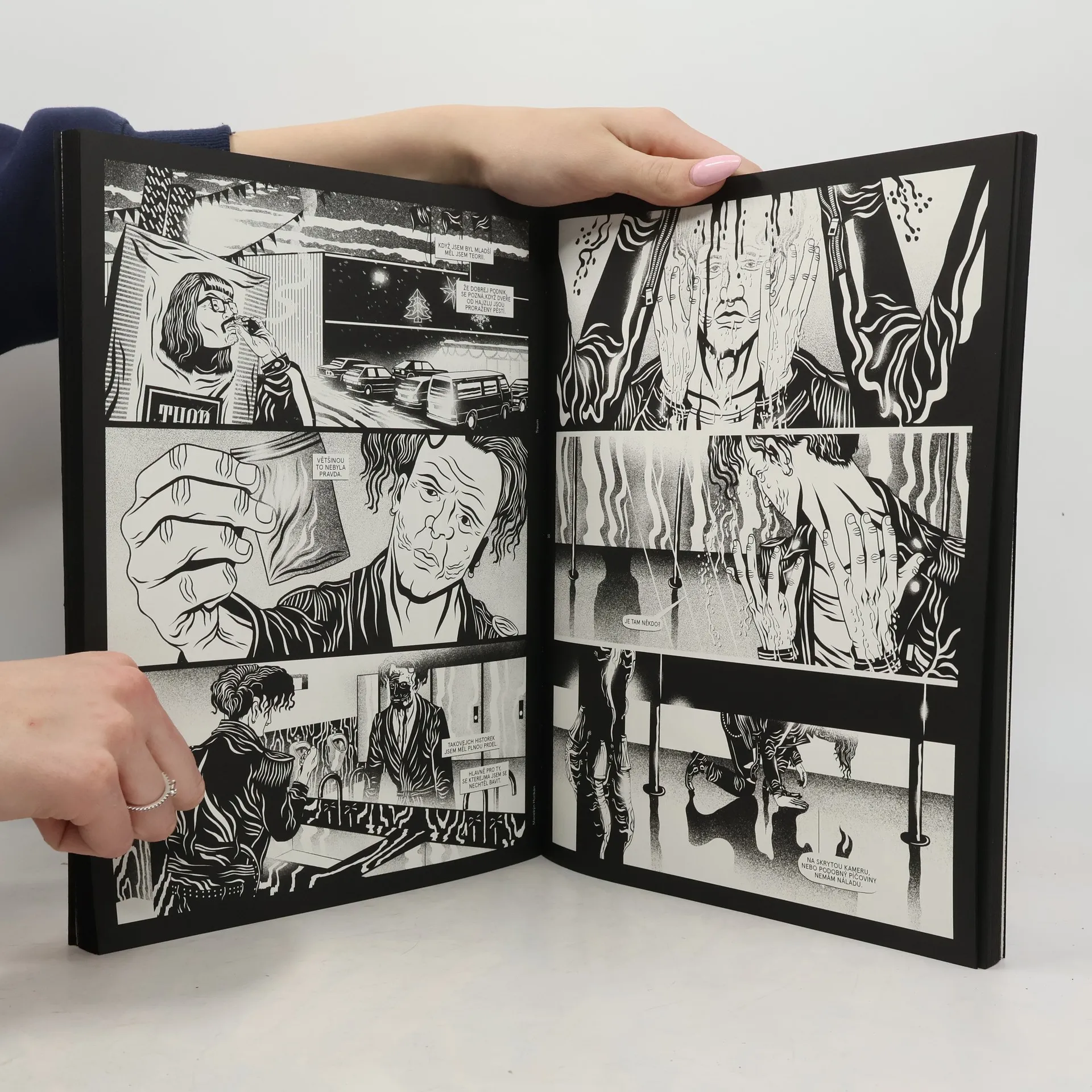 Komiksová kniha obsahuje tři vlastním nákladem již dříve vydané sešity, nově v remasterované a rozšířené podobě, a tři zcela nové podstatně obsáhlejší příběhy z univerza Traum. Doplněno celou řadou jednotlivých ilustrací. Příběhy jsou volně provázány postavou frontmana tajemné kapely Manequine a událostmi roku 1999 fiktivní reality světa Traum... Příběhy, které Traum nabízí, jsou dobře vystiženy už jejím názvem, v němž lze kromě německého výrazu pro sen jistě spatřovat i ozvěnu slova trauma. Motal ve svých výlučně černobílých komiksech plných ostrého světla a temných vržených stínů nabízí znepokojivé delirické vize, v nichž se prolínají přetavené ozvěny triviální populární kultury, civilizačních úzkostí i doposud mentálně nezpracovaných hrůz evropských dějin. Motalův příběhový svět je temný, bezvýchodný a přitom pozoruhodně vtahující. Jako tvůrce tento scenárista a kreslíř zjevně navazuje zvláště na americký nezávislý komiks, jeho poetika a výtvarný styl už jsou ale velmi osobité a na první pohled snadno rozpoznatelné. Nakladatelská anotace. Kráceno.