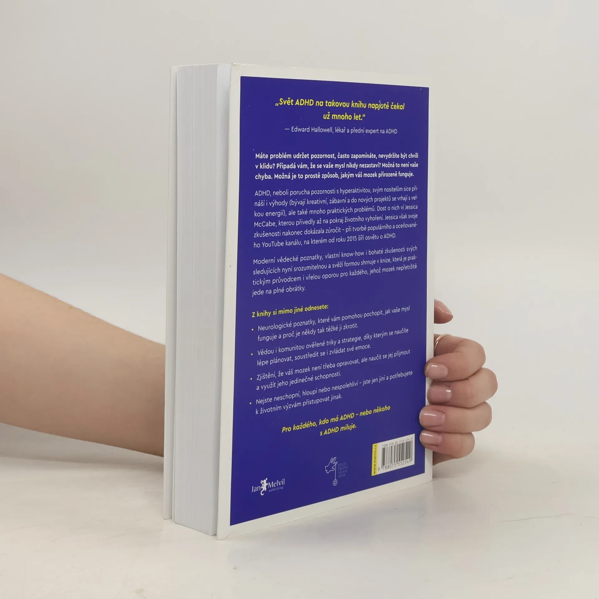 ADHD, neboli porucha pozornosti s hyperaktivitou, svým nositelům sice přináší i výhody (bývají kreativní, zábavní a do nových projektů se vrhají s velkou energií), ale také mnoho praktických problémů. Dost o nich ví Jessica McCabe, kterou přivedly až na pokraj životního vyhoření. Jessica však svoje zkušenosti nakonec dokázala zúročit – při tvorbě populárního a oceňovaného YouTube kanálu, na kterém od roku 2015 šíří osvětu o ADHD. Moderní vědecké poznatky, vlastní know-how i bohaté zkušenosti svých sledujících nyní srozumitelnou a svěží formou shrnuje v knize, která je praktickým průvodcem i vřelou oporou pro každého, jehož mozek nepřetržitě jede na plné obrátky. PRO KAŽDÉHO, KDO MÁ ADHD – NEBO NĚKOHO S ADHD MILUJE.