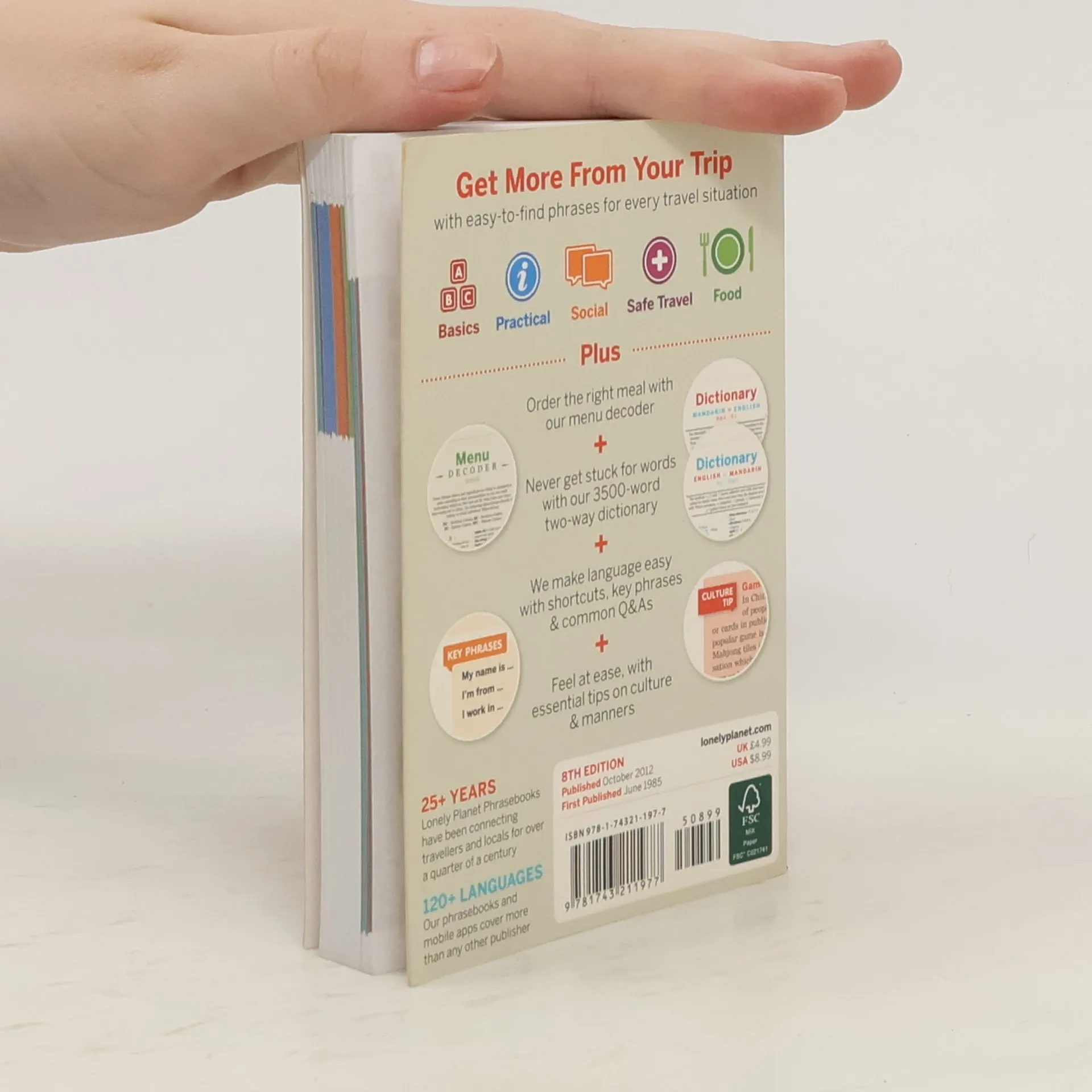 This is the new-look Mandarin phrasebook and dictionary. It includes 400 phrases in Chinese and English.