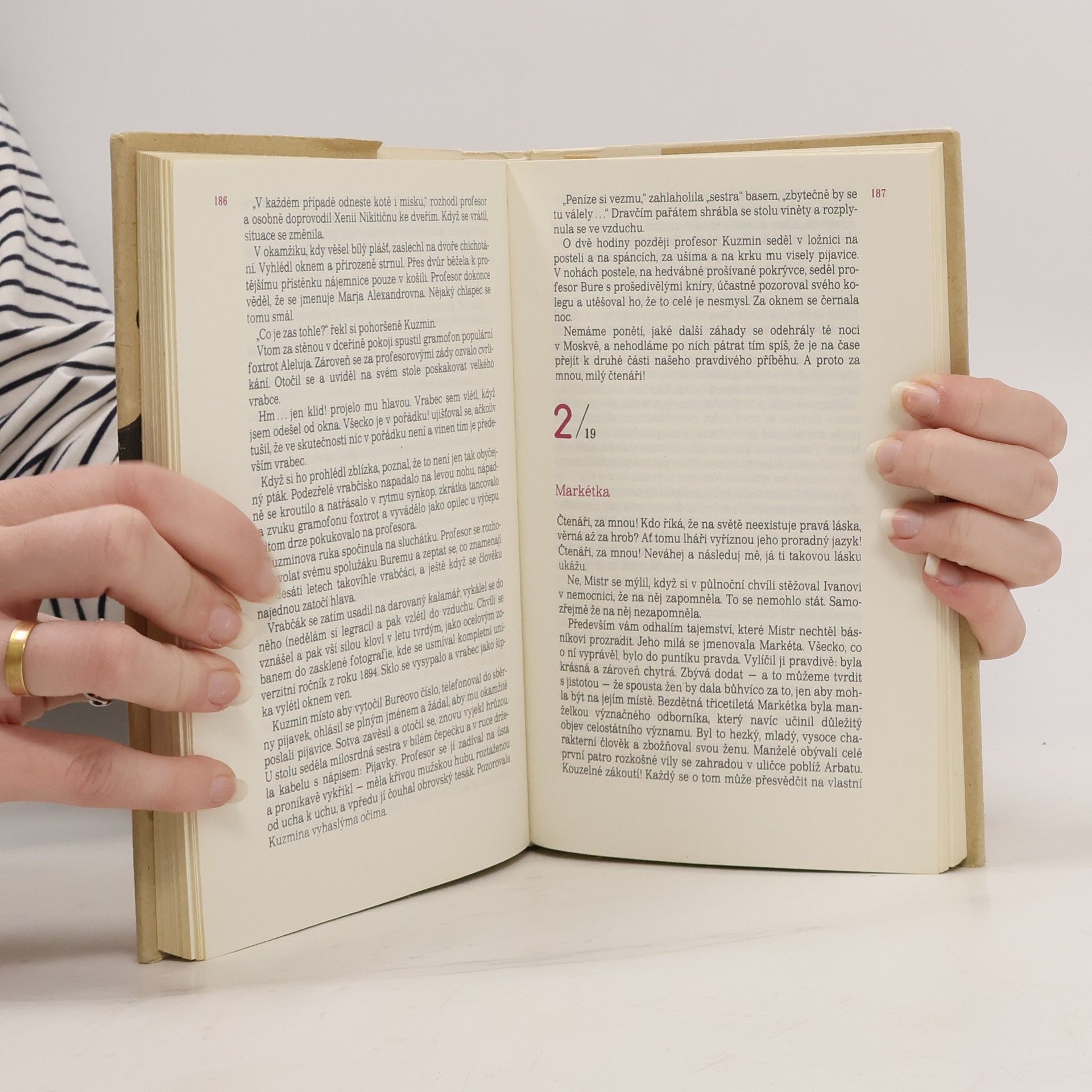 Bulgakovovo vrcholné a poslední dílo, které autorovi právem získalo světovou proslulost. V Bulgakovově groteskním mnohavrstevném mystériu se rozvíjí a prolíná více rovin: je stejně tak fantaskním a symbolickým obrazem doby jako realistickým vylíčením dusné atmosféry Moskvy 20. a 30. let, biblickým apokryfem, eschatologickou vizí i ostrou satirou na poměry. Svůj „příběh novodobého Fausta“ začal Bulgakov psát v r. 1929 a poslední úpravy diktoval, už slepý, své ženě pět dní před smrtí roku 1940.