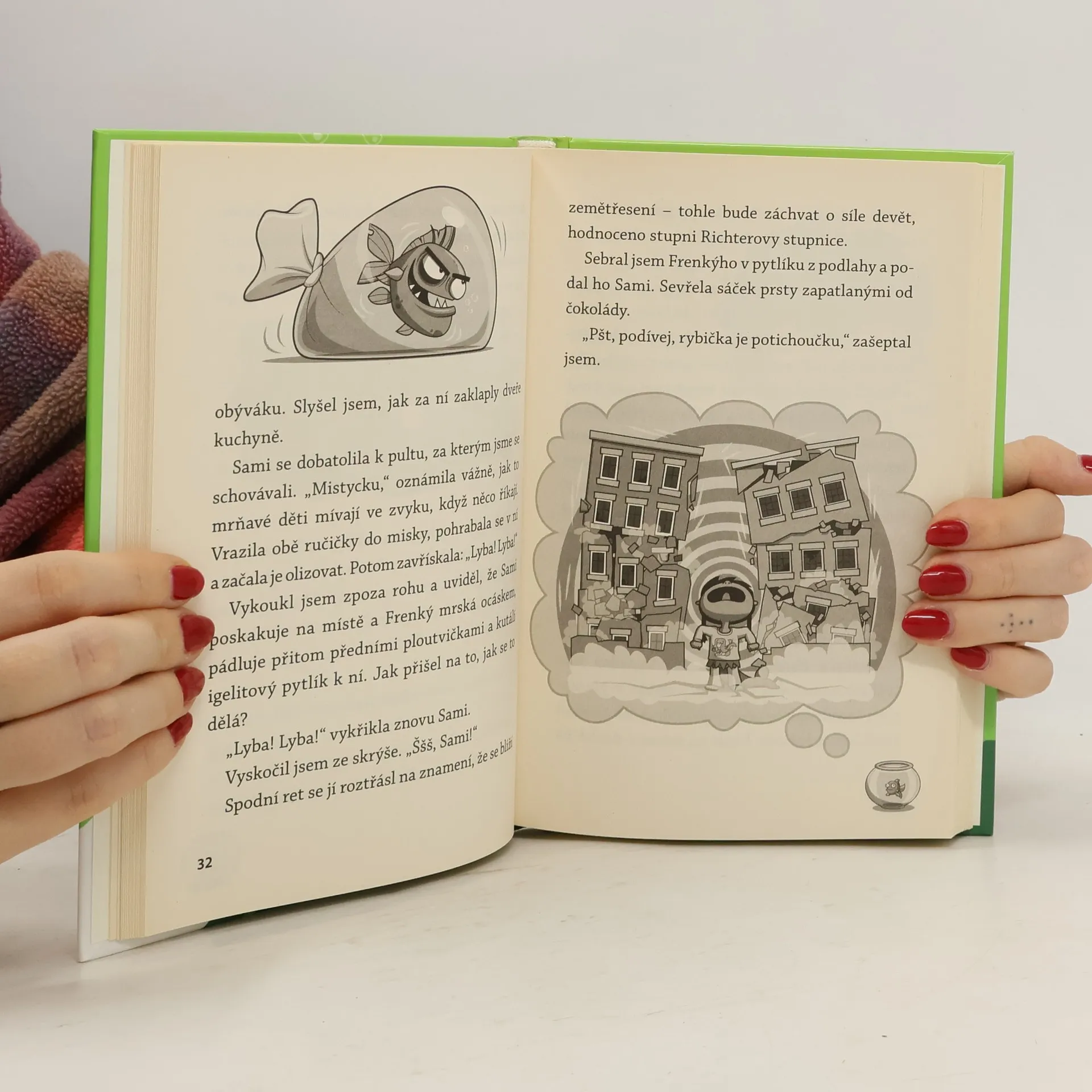 Z té milé zlaté rybičky se stala stvůra! Když Tomův brácha ponoří Frenkýho do jedovatého zeleného slizu, vypadá to, že už to Frenký nerozdýchá (nebo spíš nerozplave). Pomocí elektrošoku ho znovu vzkřísí, ale ejhle. Tenhle nový Frenký je teď nějaký divný. Proměnil se na velkou tlustou ZOMBÍ RYBU, která dokáže hypnotizovat… a pozor, touží po pomstě! Jestli se chceš válet smíchy, pusť se do čtení!