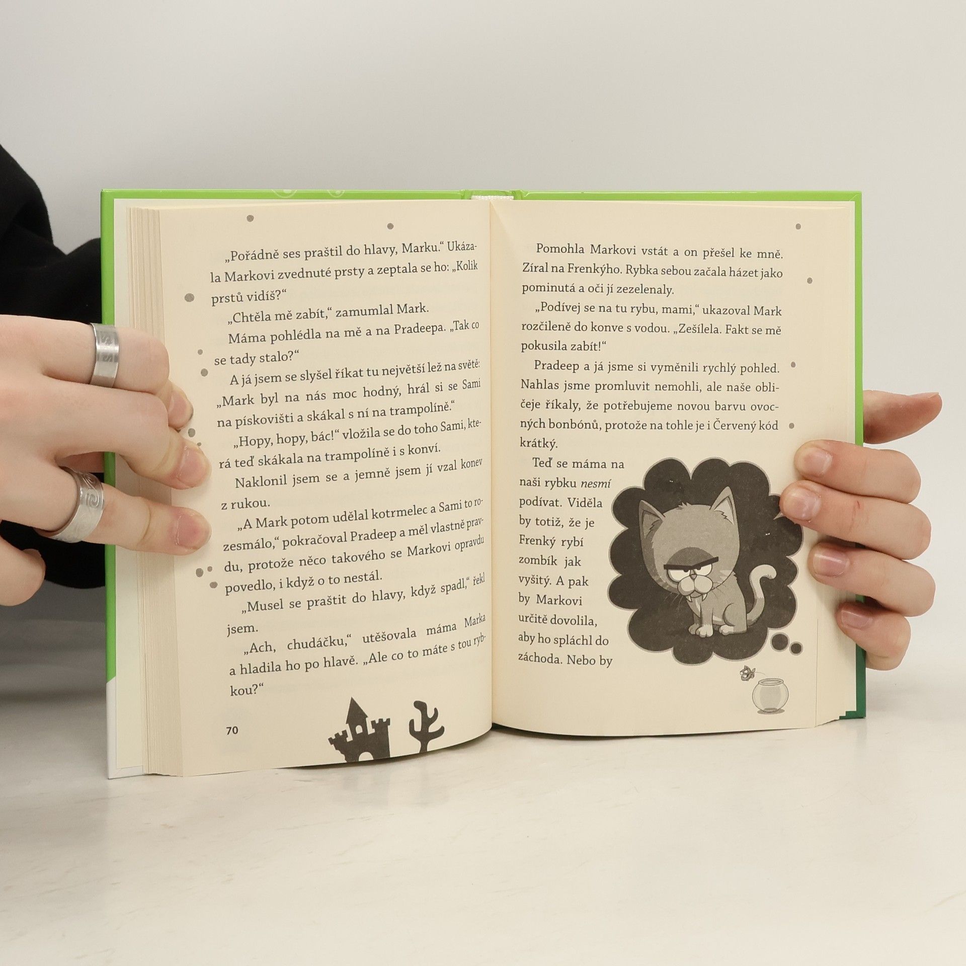 Z té milé zlaté rybičky se stala stvůra! Když Tomův brácha ponoří Frenkýho do jedovatého zeleného slizu, vypadá to, že už to Frenký nerozdýchá (nebo spíš nerozplave). Pomocí elektrošoku ho znovu vzkřísí, ale ejhle. Tenhle nový Frenký je teď nějaký divný. Proměnil se na velkou tlustou ZOMBÍ RYBU, která dokáže hypnotizovat… a pozor, touží po pomstě! Jestli se chceš válet smíchy, pusť se do čtení!
