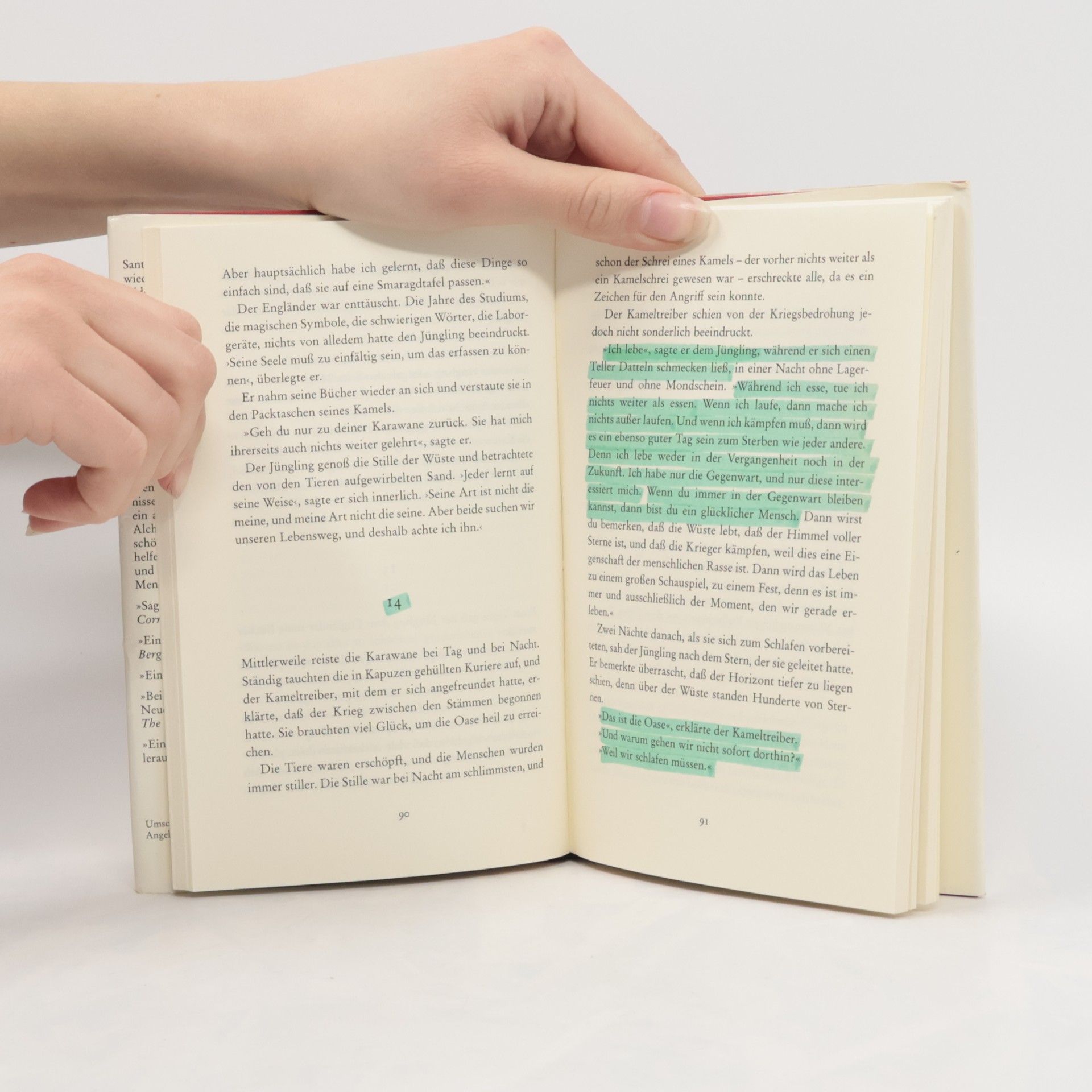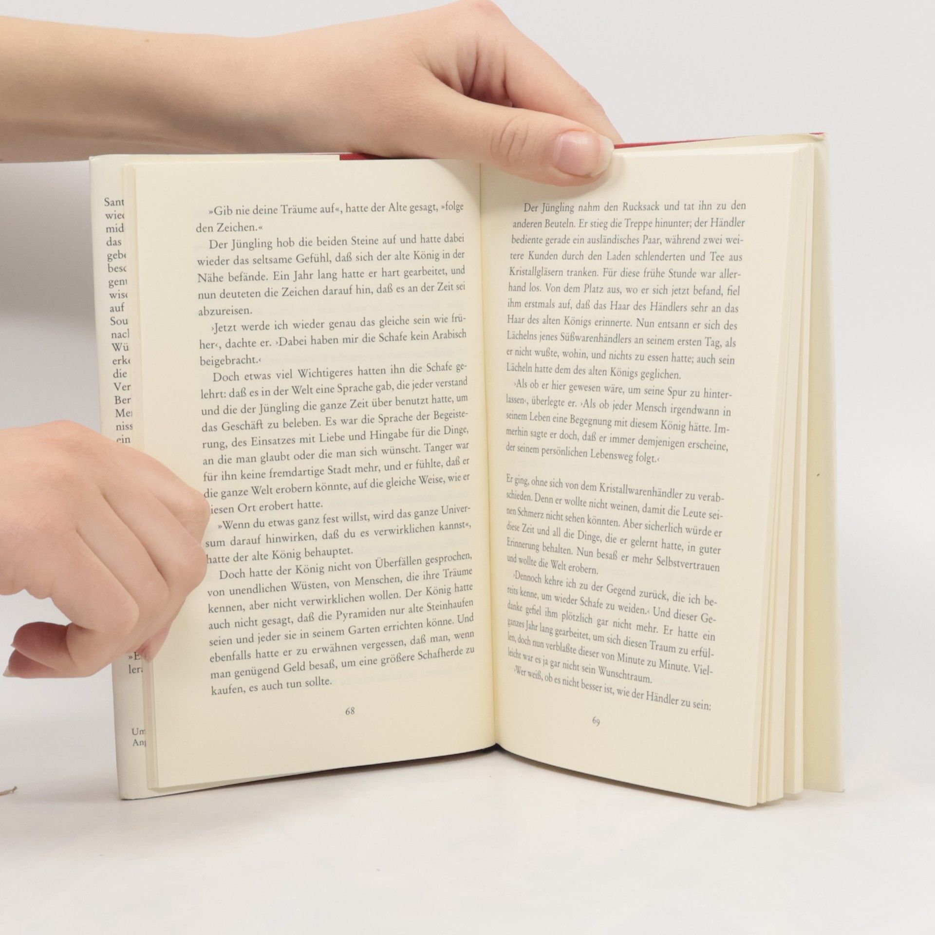 Santiago, ein andalusischer Hirte, hat einen wiederkehrenden Traum: Am Fuß der Pyramiden liege ein Schatz für ihn bereit. Soll er das Vertraute für möglichen Reichtum aufgeben? Santiago ist mutig genug, seinem Traum zu folgen. Er begibt sich auf eine Reise, die ihn über die Souks in Tanger bis nach Ägypten führt, er findet in der Stille der Wüste auch zu sich selbst und erkennt, dass das Leben Schätze bereithält, die nicht mit Gold aufzuwiegen sind.