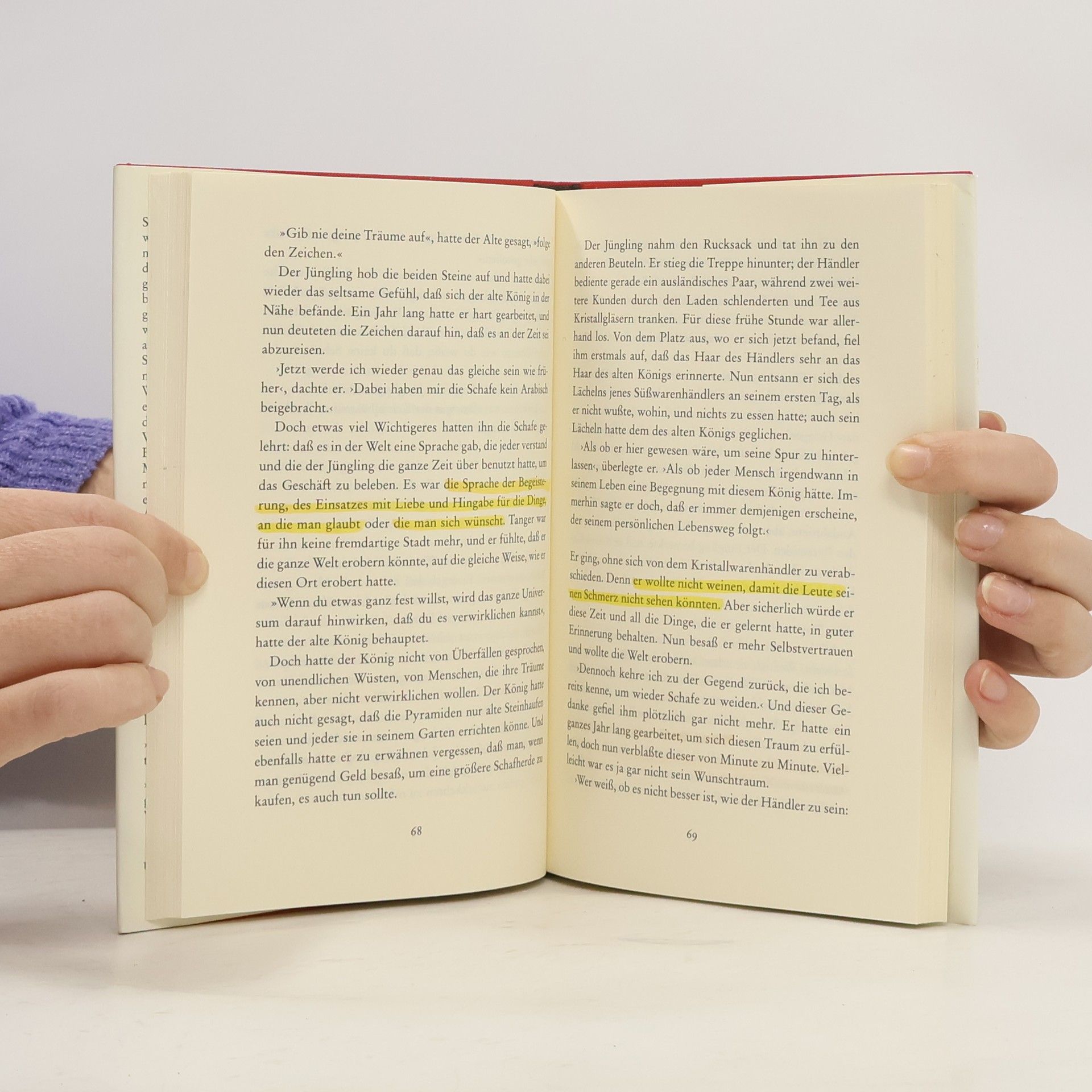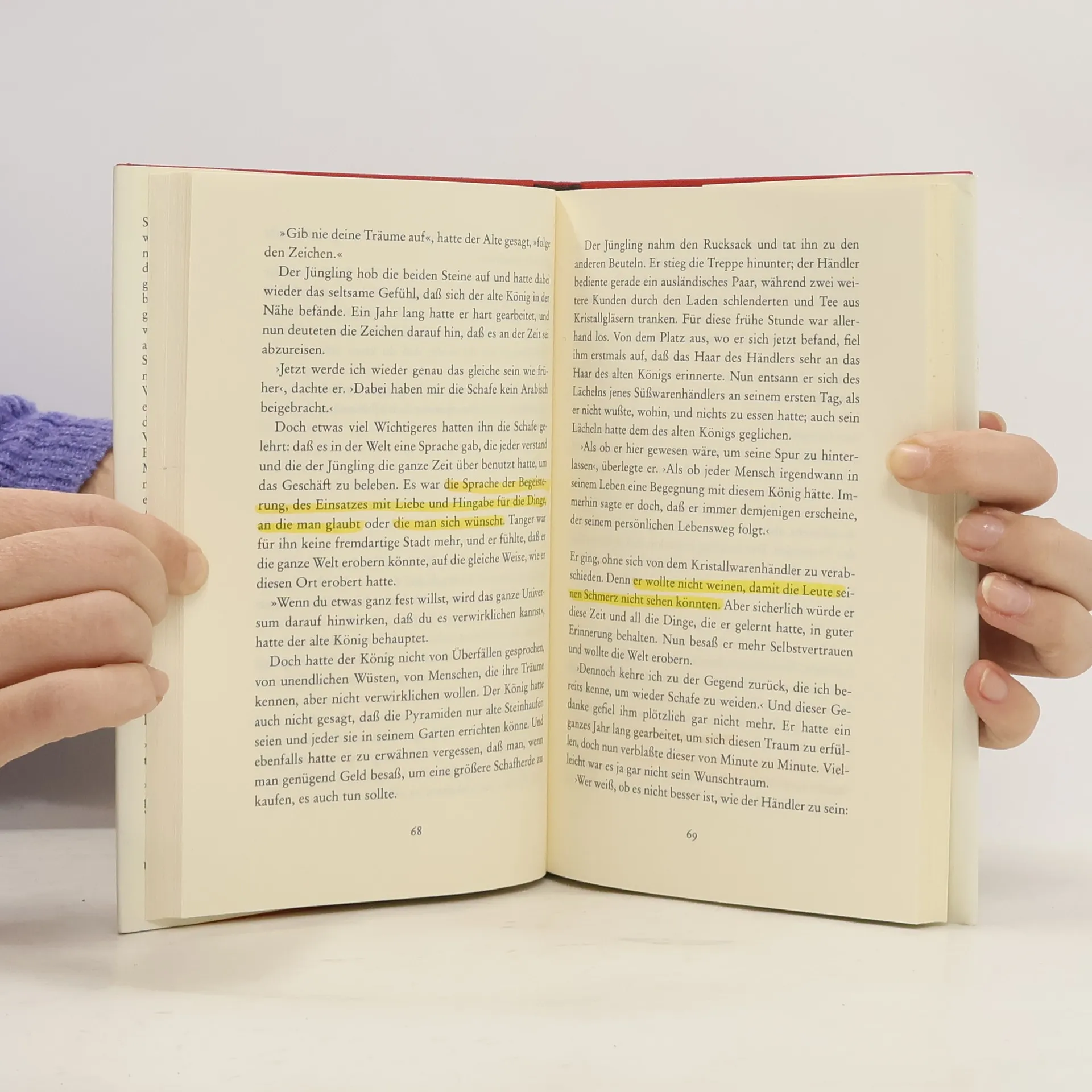 Santiago, ein andalusischer Hirte, hat einen wiederkehrenden Traum: Am Fuß der Pyramiden liege ein Schatz für ihn bereit. Soll er das Vertraute für möglichen Reichtum aufgeben? Santiago ist mutig genug, seinem Traum zu folgen. Er begibt sich auf eine Reise, die ihn über die Souks in Tanger bis nach Ägypten führt, er findet in der Stille der Wüste auch zu sich selbst und erkennt, dass das Leben Schätze bereithält, die nicht mit Gold aufzuwiegen sind.