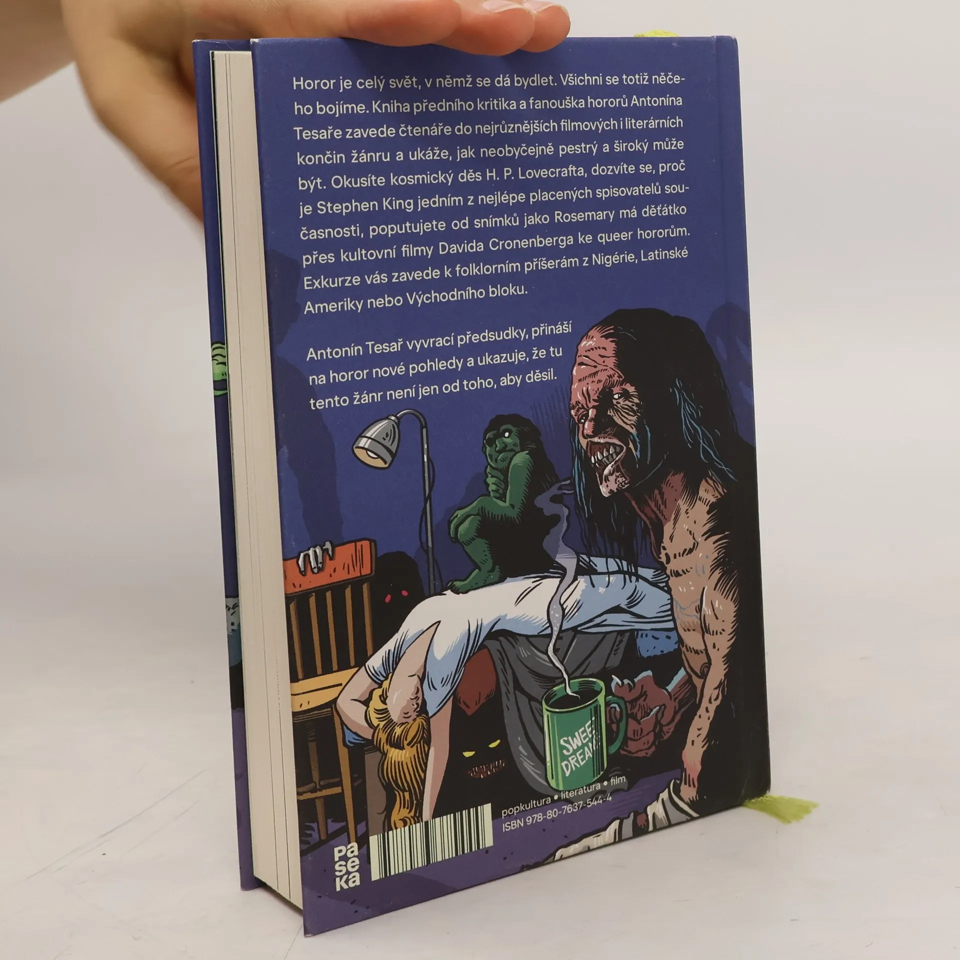 Horor je celý svět, v němž se dá bydlet. Všichni se totiž něčeho bojíme. Kniha předního kritika a fanouška hororů Antonína Tesaře zavede čtenáře do nejrůznějších filmových i literárních končin tohoto žánru a ukáže, jak neobyčejně pestrý a široký může být. Okusíte kosmický děs H. P. Lovecrafta, dozvíte se, proč je Stephen King jedním z nejlépe placených spisovatelů současnosti, poputujete od snímků jako Rosemary má děťátko přes kultovní filmy Davida Cronenberga až po queer horory. Exkurze vás zavede k folklorním příšerám z Nigérie, Latinské Ameriky nebo Východního bloku. Antonín Tesař vyvrací předsudky, přináší nové pohledy na horor a ukazuje, že tu tento žánr není jen od toho, aby děsil. Vychází s doslovem Ivana Adamoviče.