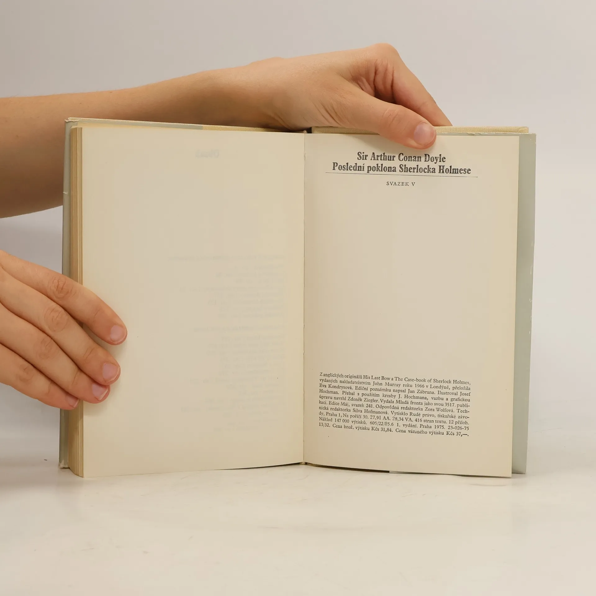 12 povídek. Závěrečný svazek obsahuje dva cykly povídek. Popudem k prvnímu s názvem Poslední poklona Sherlocka Holmese byla povídka Poslední poklona, v níž autor posílá svého hrdinu do souboje s německým špiónem z první světové války a k níž připojil další povídky již dříve časopisecky publikované. Druhý, nazvaný Z archívu Sherlocka Holmese, je složen z příběhů, které se staly dříve a které údajně Watson opožděně zapsal. I když Doyle v těchto povídkách nepřidává do charakteru obou postav nic nového, přesto prozrazují autora poučeného dlouhou zkušeností a mnohdy představují nejlepší holmesovské příběhy vůbec.