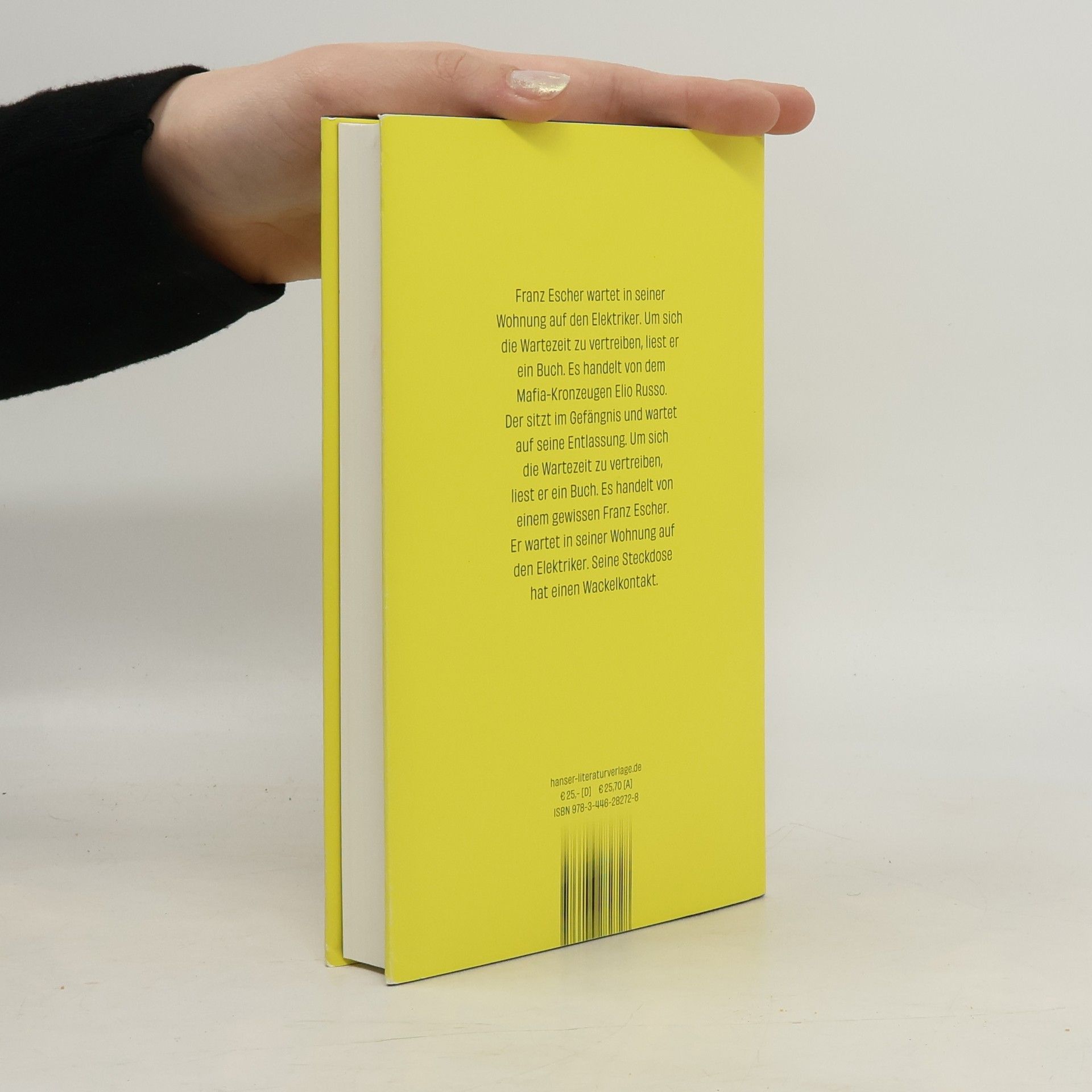 Funkenschlagend und spannend bis zum finalen Kurzschluss – »der neue Wolf Haas ist ein Wunder. Bitte ganz unbedingt lesen.« Adam Soboczynski, Die Zeit Franz Escher wartet auf den Elektriker. Seine Steckdose hat einen Wackelkontakt. Um sich die Zeit zu vertreiben, liest er ein Buch über den Mafia-Kronzeugen Elio Russo. Elio sitzt im Gefängnis und wartet auf die Entlassung. Er hat so viele Leute verraten, dass er um sein Leben fürchtet. Aus Angst liegt er nachts wach und liest ein Buch. Es handelt von Franz Escher. Der wartet auf den Elektriker. Seine Steckdose hat einen Wackelkontakt. Wolf Haas' neuer Roman zündet ein erzählerisches Feuerwerk: Was beginnt wie zwei halbwegs übersichtliche Lebensgeschichten, verwirbelt sich zu einem schwindelerregenden Tanz - mit einem toten Handwerker, familiären Verstrickungen und vielen ungelösten Geheimnissen, funkenschlagend und spannend bis zum finalen Kurzschluss.