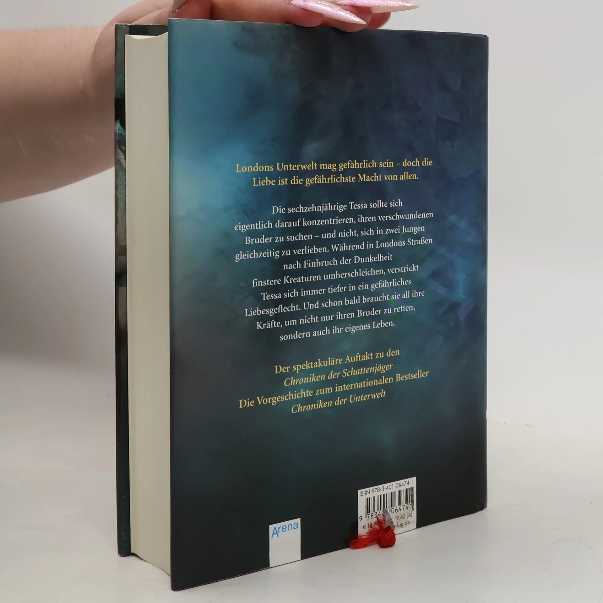 London, 1878. Ein mysteriöser Mörder treibt in den dunklen Straßen der Stadt sein Unwesen. Ungewollt gerät Tessa in den Kampf zwischen Vampiren, Hexenmeistern und anderen übernatürlichen Wesen. Als sie erfährt, dass auch sie eine Schattenweltlerin ist und zudem eine seltene Gabe besitzt, wird sie selbst zur Gejagten. Doch dann findet sie Verbündete, und zwar ausgerechnet im Institut der Schattenjäger. Dort trifft sie nicht nur auf James, hinter dessen zerbrechlicher Schönheit sich ein tödliches Geheimnis verbirgt, sondern auch auf Will, der mit seinen Launen jeden auf Abstand hält – jeden, außer Tessa. Tessa ist völlig hin- und hergerissen, und weiß nicht, wem sie trauen soll. Schließlich sind die Schattenjäger ihre natürlichen Feinde.