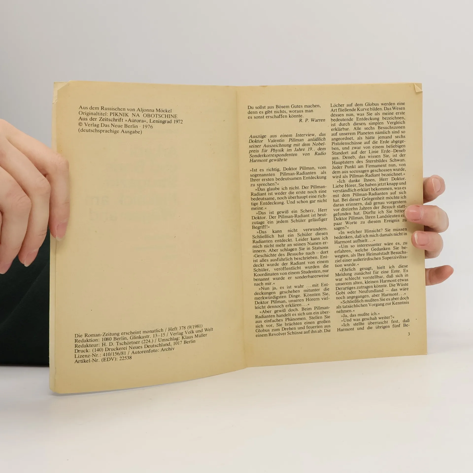 Romanzeitung 9/1981. Picknick am Wegesrand, Arkady Strugatsky, Boris Strugatsky