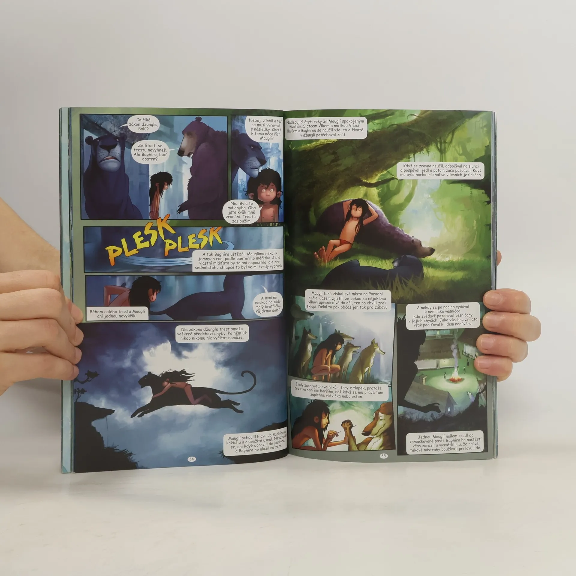 Slavný příběh lidského mláděte Mauglího začíná, když jako malé batole unikne ze spárů lidožravého tygra Šér Chána. Je zachráněn rodinou vlků a později je přijat i za člena vlčí smečky. Jak Mauglí dospívá, jeho zvířecí přátelé, mezi něž patří především odvážný černý panter Baghíra, moudrý medvěd Balú a lstivá krajta Ká, jej učí životu v džungli.. Nedaleko Mauglího se však neustále potlouká tygr Šér Chán, který si umínil, že chlapce přeci jen uloví. Jednoho dne se ale role obrátí a z lovce se stává kořist. Chlapec nakonec odvěkého nepřítele vláká chytrým plánem do léčky a zabije ho. Mauglí si také postupně hledá cestu k lidem. Přijmou ho zpět mezi sebe?