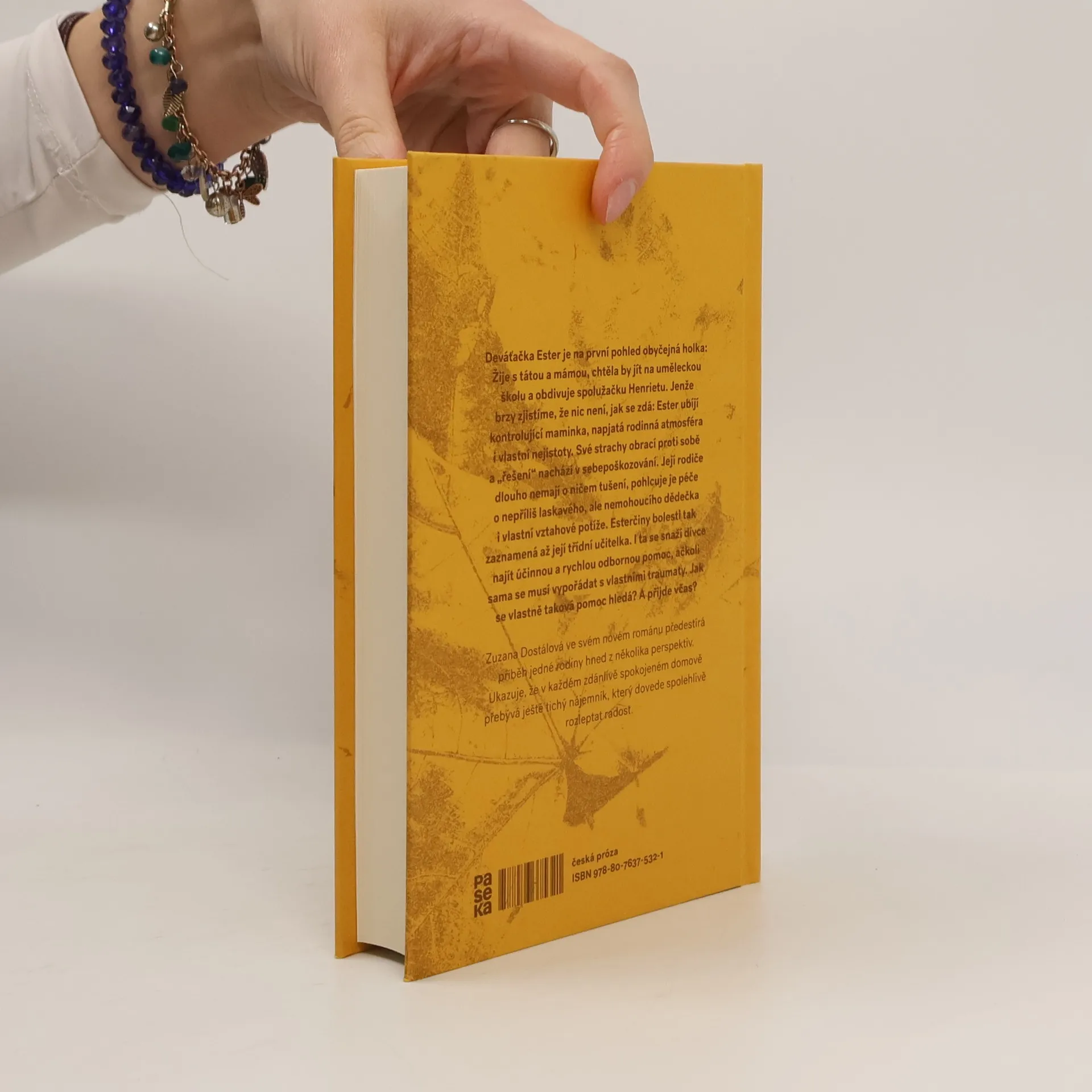Deváťačka Ester je na první pohled obyčejná holka: Žije s tátou a mámou, chtěla by jít na uměleckou školu a obdivuje spolužačku Henrietu. Jenže brzy zjistíme, že nic není, jak se zdá: Ester ubíjí kontrolující maminka, napjatá rodinná atmosféra i vlastní nejistoty. Své strachy obrací proti sobě a „řešení“ nachází v sebepoškozování. Její rodiče dlouho nemají o ničem tušení, pohlcuje je péče o nepříliš laskavého, ale nemohoucího dědečka i vlastní vztahové potíže. Esterčiny bolesti tak zaznamená až její třídní učitelka. I ta se snaží dívce najít účinnou a rychlou odbornou pomoc, ačkoli sama se musí vypořádat s vlastními traumaty. Jak se vlastně taková pomoc hledá? A přijde včas? Zuzana Dostálová ve svém novém románu předestírá příběh jedné rodiny hned z několika perspektiv. Ukazuje, že v každém zdánlivě spokojeném domově přebývá ještě tichý nájemník, který dovede spolehlivě rozleptat radost.