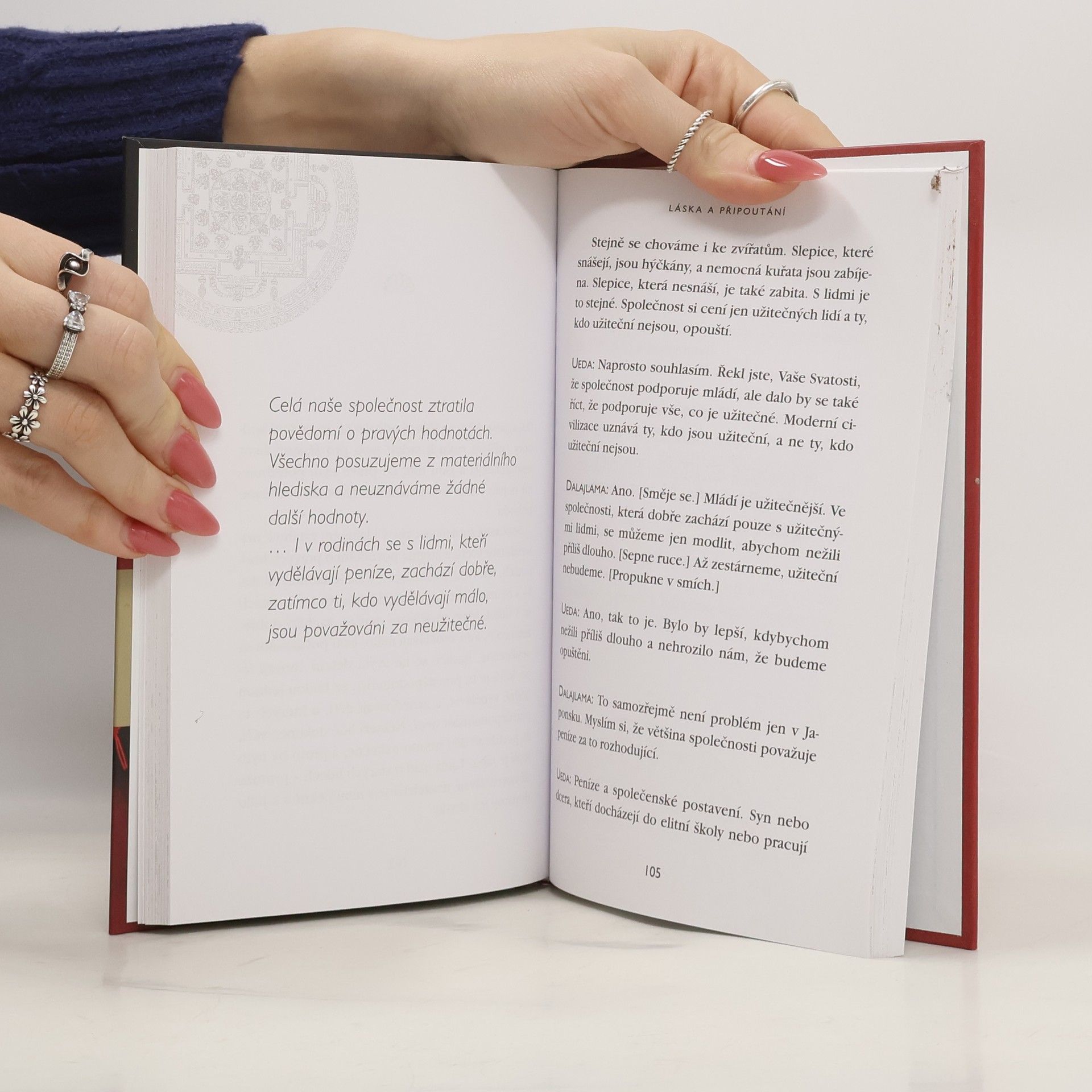 Před několika lety vedl významný kulturní antropolog Noriyuki Ueda dvoudenní osobní rozhovor s dalajlamou. Vzešla z něj tato knížka obsahující překvapivé pravdy a poznání, velmi autentická a založená na zdravém přístupu. Otevřete knihu na kterékoli straně a dočtete se moudrá slova o tom, co v životě hraje největší roli. Není třeba přimknout se k nějaké doktríně či politickému systému, ale podstatné je žít s otevřenou myslí a srdcem.