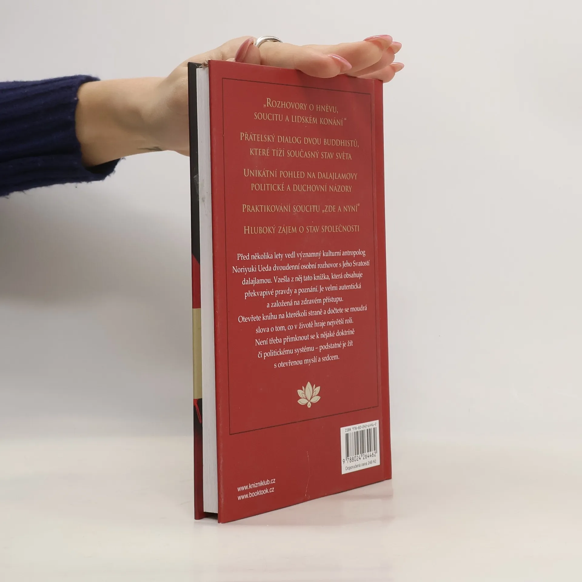 Před několika lety vedl významný kulturní antropolog Noriyuki Ueda dvoudenní osobní rozhovor s dalajlamou. Vzešla z něj tato knížka obsahující překvapivé pravdy a poznání, velmi autentická a založená na zdravém přístupu. Otevřete knihu na kterékoli straně a dočtete se moudrá slova o tom, co v životě hraje největší roli. Není třeba přimknout se k nějaké doktríně či politickému systému, ale podstatné je žít s otevřenou myslí a srdcem.