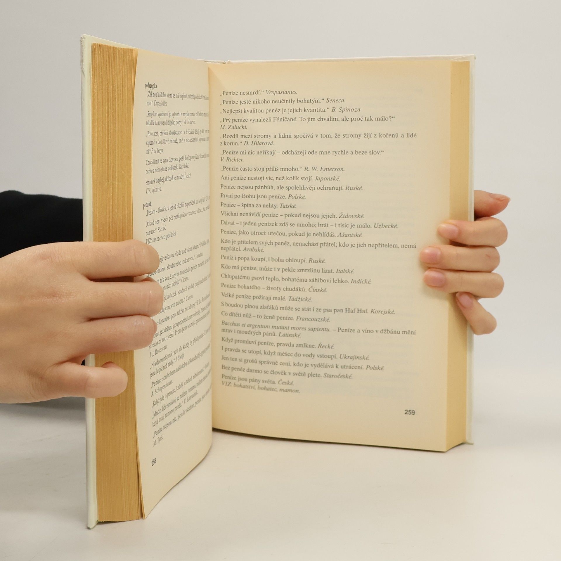 Zábavná encyklopedie moudrosti, ojedinělá šíří záběru, komplexností i přehledným uspořádáním. Citáty z písemných pramenů nejstarších civilizací a světových náboženství; myšlenky antických filozofů; sentence současných myslitelů; výroky slavných umělců, literátů a vědců. Přísloví národů celého eurasijského kontinentu, aforismy, jízlivosti, bonmoty, lidová rčení.