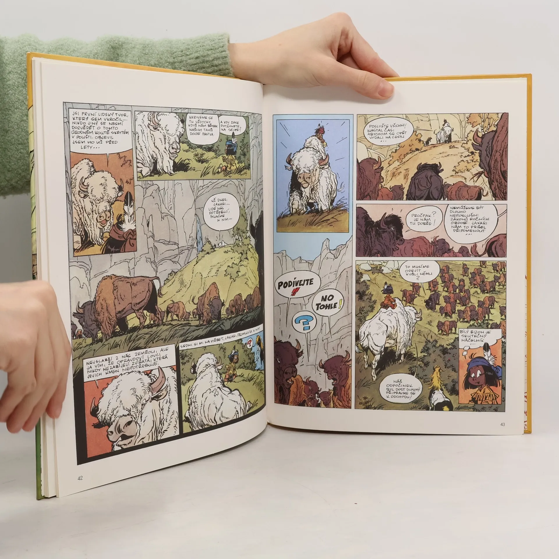 Zima letos nějak nechce končit. Zvířata i lidé mají hlad, na všem však pořád leží chladivá sněhová pokrývka. Indiáni proto sbalí svůj tábor a vydají se na jih, vstříc bizoním stádům. Navzdory tomu, že stopaři objeví stopy velkého stáda, nečekaná bouře zabrání lovcům zvířata dostihnout a po jejím odeznění už je pozdě. Bizoni prapodivně zmizeli a před zraky pátračů se prostírá jenom nekonečná poušť, která nedává naději objevit potravu… Tam, kde neuspěli zkušení lovci, nastupuje do akce malý Jakari. Díky věšteckému snu a nemalé pomoci Velkého Orla i svého věrného mustanga Malého Bleska přežije strašlivou cestu pouští, aby v jejím nitru objevil…