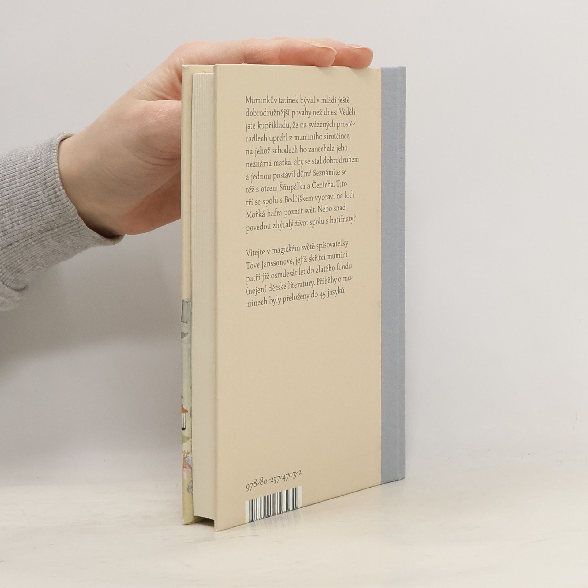 Muminkův tatínek býval v mládí ještě dobrodružnější povahy než dnes! Věděli jste kupříkladu, že na svázaných prostěradlech uprchl z muminího sirotčince, na jehož schodech ho zanechala jeho neznámá matka, aby se stal dobrodruhem a jednou postavil dům? Seznámíte se též s otcem Šňupálka a Čenicha. Tito tři se spolu s Bedřiškem vypraví na lodi Mořká hafra poznat svět. Nebo snad povedou zhýralý život spolu s hatifnaty?