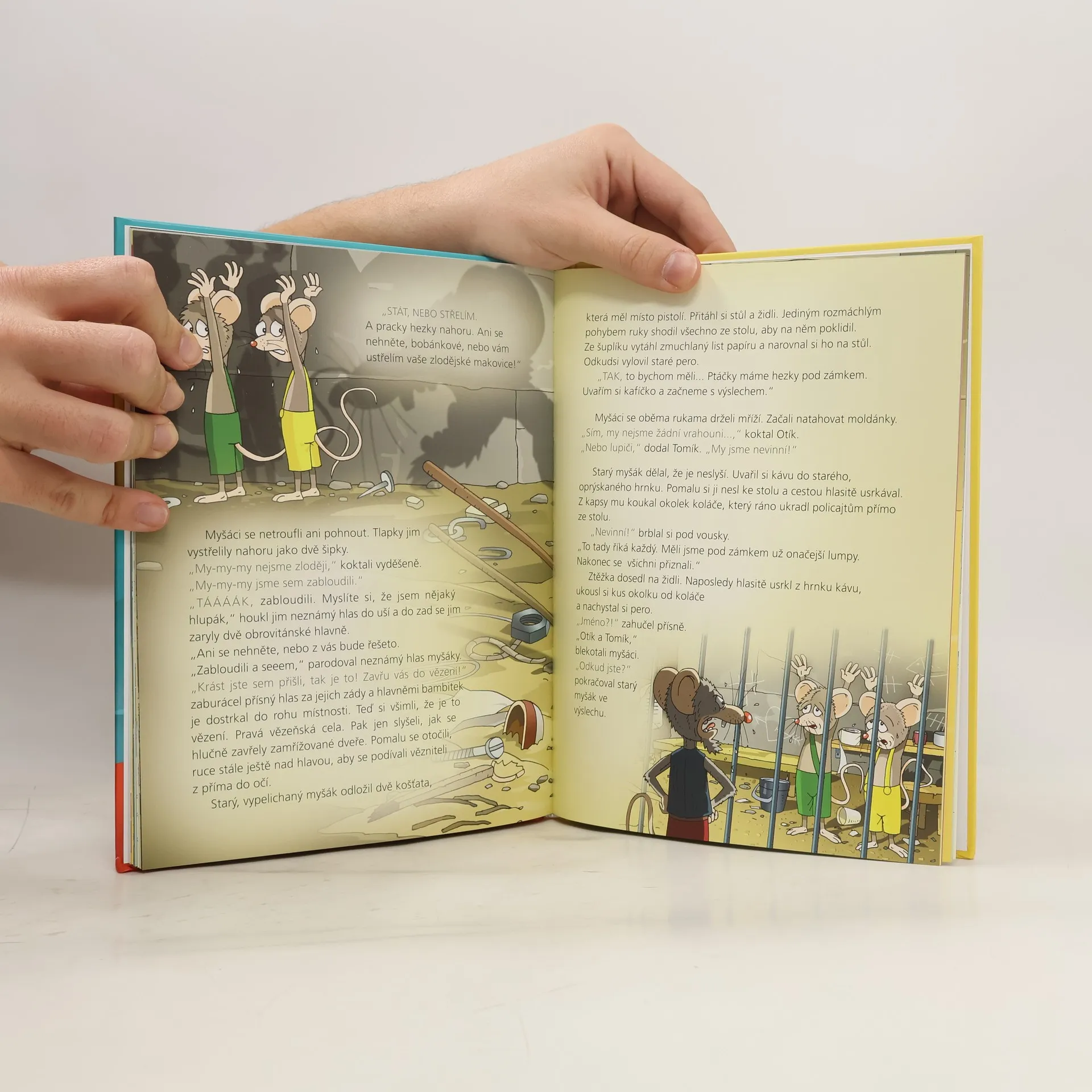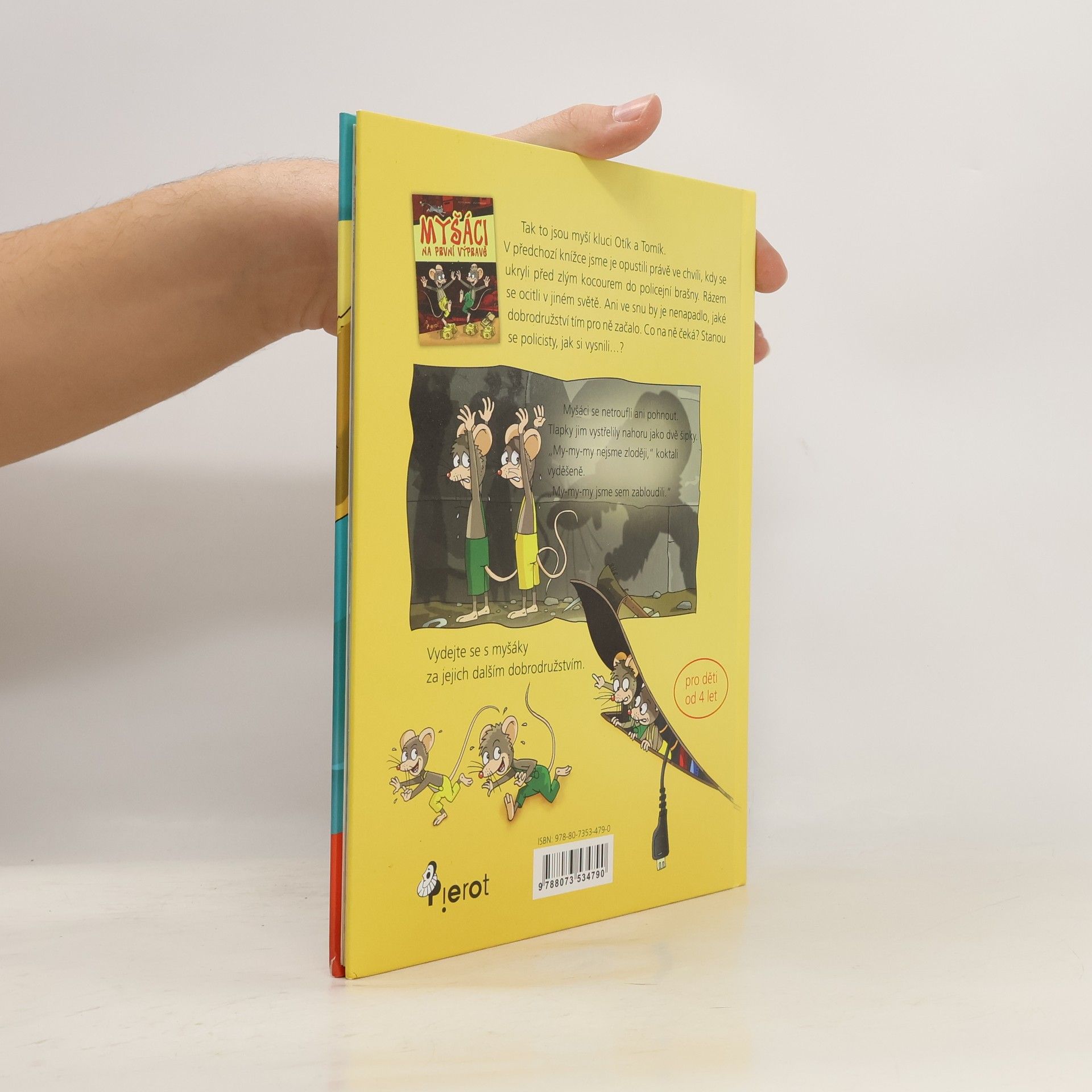 Volné pokračování dobrodružných příběhů myšáků Tomíka a Otíka, se kterými jsme se seznámili už v knížce „Myšáci na první výpravě“. V předchozí knížce jsme je opustili ve chvíli, kdy se nedopatřením dostali do policejní brašny. Ono to ale tak úplně nedopatřením nebylo, byl to spíš zoufalý úprk před kocourem. A tak se malí bráškové dostali na policejní stanici, kde je čekala spousta dobrodružství, se kterými si museli poradit. Veselé příběhy myšáčků jsou vhodné pro děti od 4 let.
