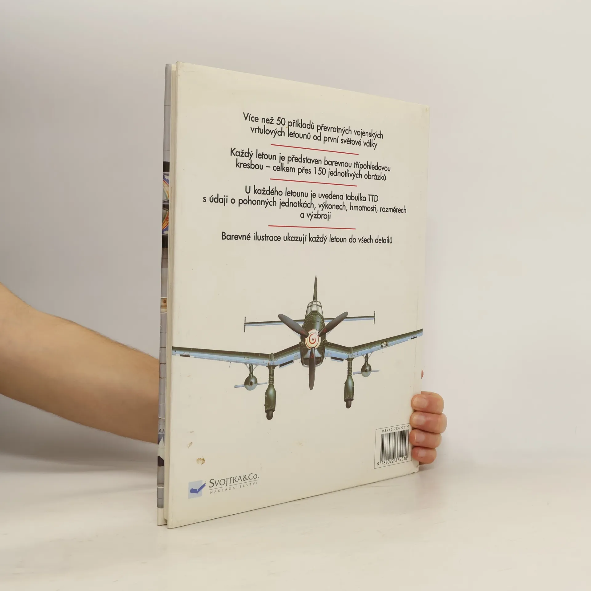 Podrobně ilustrovaný průvodce nejvýznamnějšími vojenskými vrtulovými letouny od první světové války. Více než 50 letounů představených pomocí barevných třípohledových obrázků a doplněných podrobnými tabulkami TTD.