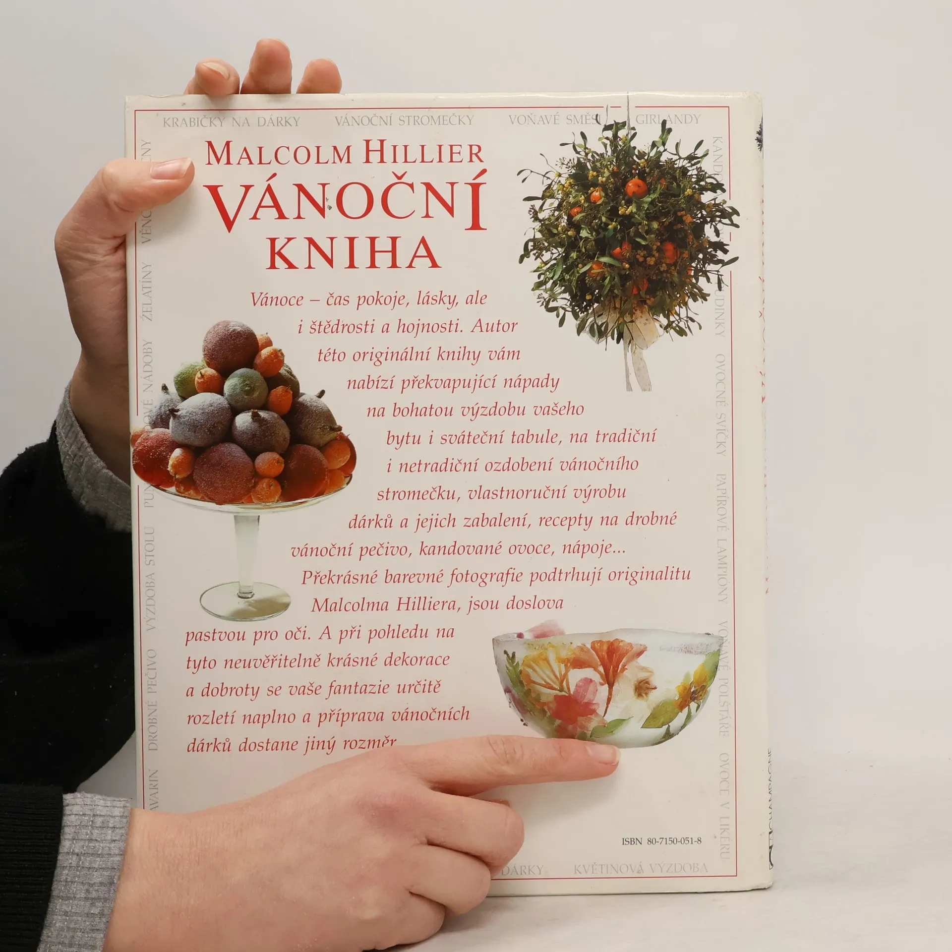 Výpravná publikace slovem i obrazem radí s vánoční dekorací a slavnostním stolováním v anglo-americkém stylu.Dobu před vánočními svátky si můžeme zpestřit adventními věnci, svíčkami, vůněmi sušených květů a bylin, dekoracemi z větviček jehličnanů a stálezelených keřů, výrobou dárků. V této výpravné vánoční knize se střídají nápady na zdobení stromečků, svátečního stolu, výzdobu bytu s recepty na vánoční sladkosti nebo ovoce v likéru.