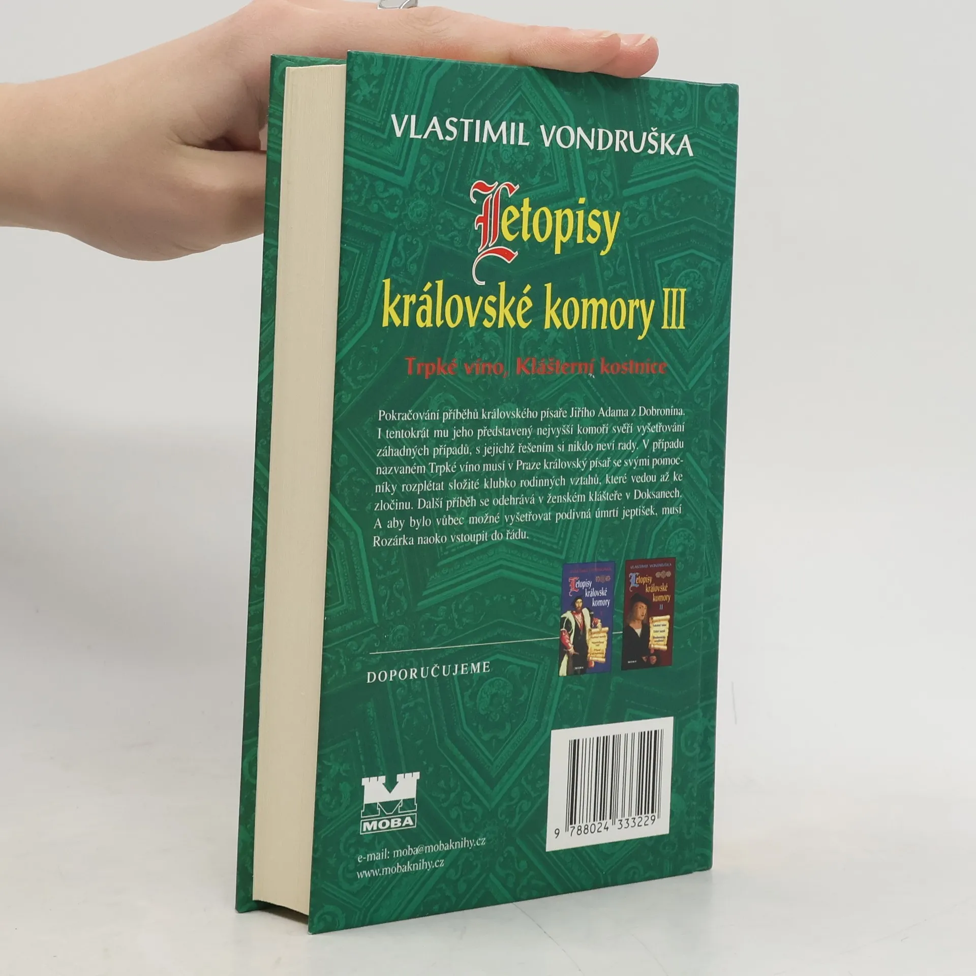Pokračování příběhů královského písaře Jiřího Adama z Dobronína. I tentokrát mu jeho představený nejvyšší komoří svěří vyšetřování záhadných případů, s jejichž řešením si nikdo neví rady. V případu nazvaném Trpké víno musí v Praze královský písař se svými pomocníky rozplétat složité klubko rodinných vztahů, které vedou až ke zločinu. Další příběh se odehrává v ženském klášteře v Doksanech. A aby bylo vůbec možné vyšetřovat podivná úmrtí jeptišek, musí Rozárka naoko vstoupit do řádu.