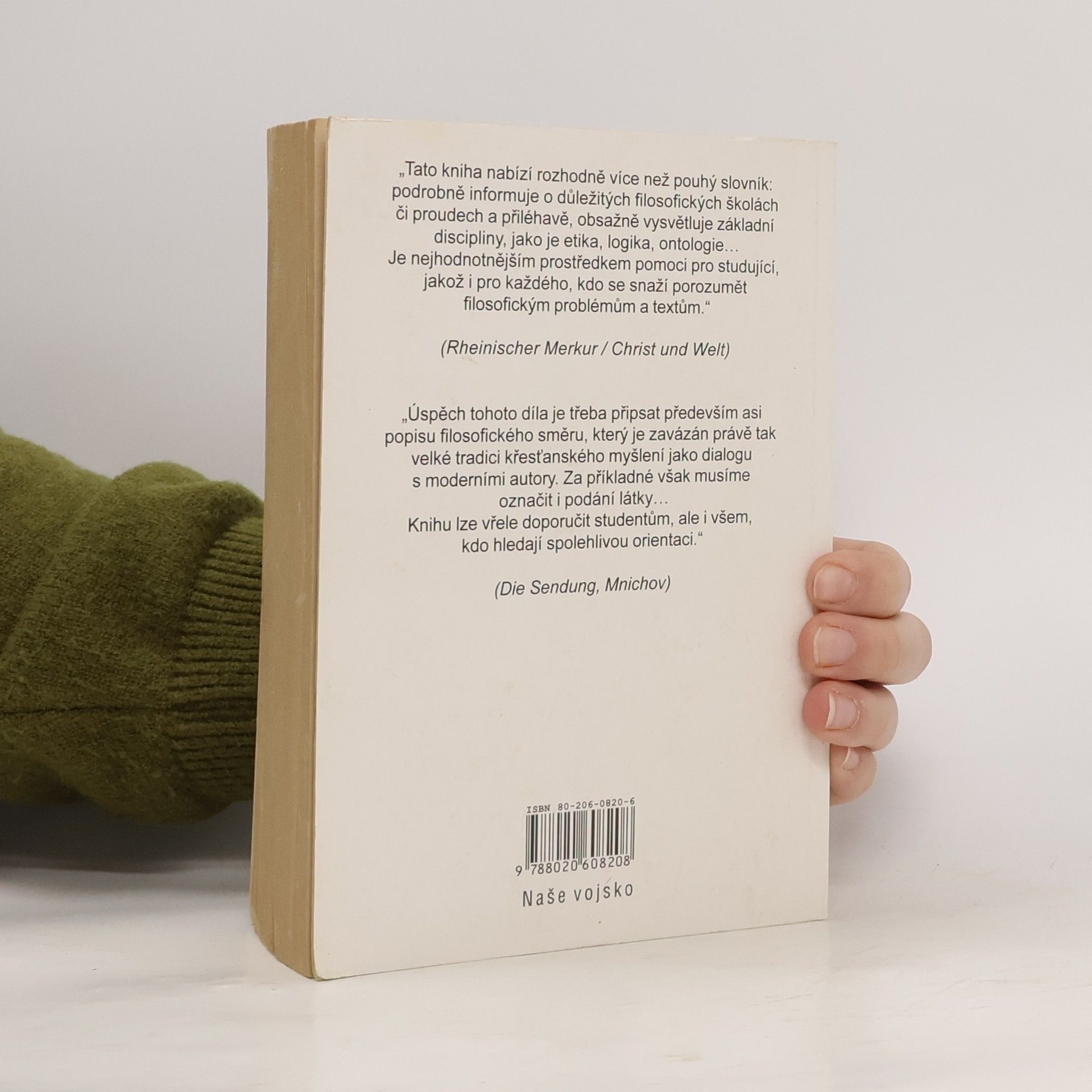 Nové vydání oblíbeného slovníku vám v podrobně pojatých encyklopedických heslech představí filozofii současnosti i dávné minulosti. V běhu času se mění problémy duchovního života, pokusy o jejich řešení, typická stanoviska. Tato skutečnost zdůvodňuje nové přepracování tohoto slovníku při přidržení se celkového pojetí a rozvrhu díla. Kromě mnoha menších změn a doplňků je připojeno na 40 nových hesel a přes sto hesel přepracováno nebo pojato novým způsobem.