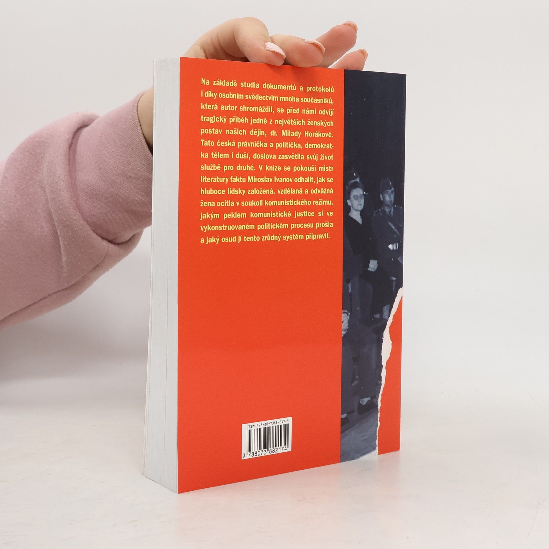 Milada Horáková, narozená v Praze, vystudovala práva na Univerzitě Karlově a po promoci v roce 1926 pracovala u Pražského městského soudu. Vstoupila do Československé národně socialistické strany a po nacistické okupaci byla vězněna v Terezíně a později v Německu. Po osvobození v květnu 1945 se vrátila do Prahy, byla zvolena do parlamentu a aktivně se zapojila do politiky až do komunistického puče v únoru 1948, kdy rezignovala. I přes doporučení přátel zůstat v zemi, Horáková zůstala a pokračovala v politické činnosti. Dne 27. září 1949 byla zatčena a obviněna z vůdcovství v hnutí proti komunistickému režimu. Proces s ní a dvanácti kolegy začal 31. května 1950 jako veřejný "politický proces". Obžalovaní, včetně Horákové, se snažili bránit své ideály, přestože věděli, že si tím zhoršují šance na mírnější trest. Po osmidenním procesu byly vyneseny rozsudky: čtyři tresty smrti, čtyři doživotní vězení a pět trestů od dvaceti do dvaceti osmi let. Horáková byla 8. června 1950 odsouzena k trestu smrti oběšením, který byl vykonán 27. června 1950. Nové studie ukazují, že její smrt byla obzvlášť brutální. Dr. Miroslav Ivanov přiblížil příčiny a důsledky tohoto politicky motivovaného procesu na základě archivních dokumentů, čímž vytvořil otřesné svědectví o politických procesech 50. let.