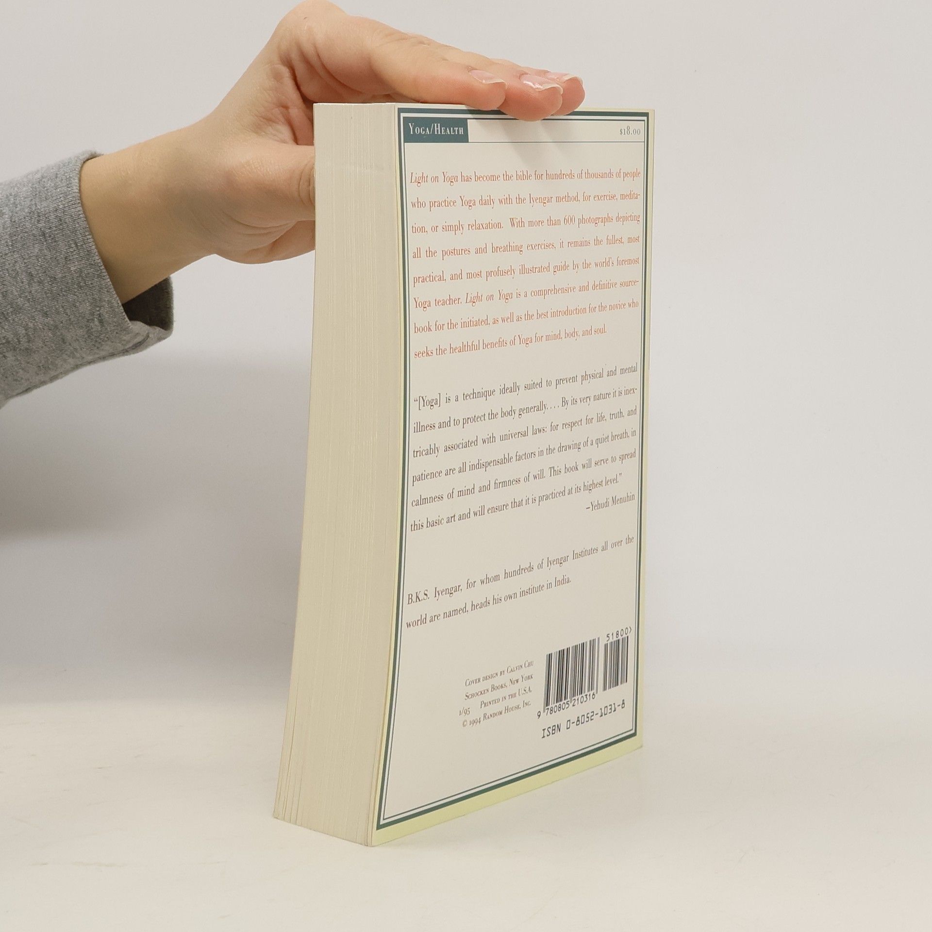 A modern yoga classic • Deepen your practice with the definitive guide to the philosophy and practice of yoga—the ancient healing discipline for body and mind—by the world-renowned teacher who brought the art of yoga to the West, Light on Yoga provides complete descriptions and illustrations of yoga positions and breathing exercises, along with explanations of the main philosophies of yoga. Iyengar's style and teachings emphasize precision and alignment, planned sequencing, timing, and the use of props. • Learn Proper Alignment • Dive Deeper Into Yoga Philosophy • Cultivate Inner Awareness With Pranayama • Learn Sanskrit • Learn Inspiration On and Off the Mat "600 pictures and an incredible amount of detailed descriptive text as well as philosophy.... Fully revised and photographs illustrating the exercises appear right next to the descriptions.... We highly recommend this book." —WELLNESS Foreword by Yehudi Menuhin.