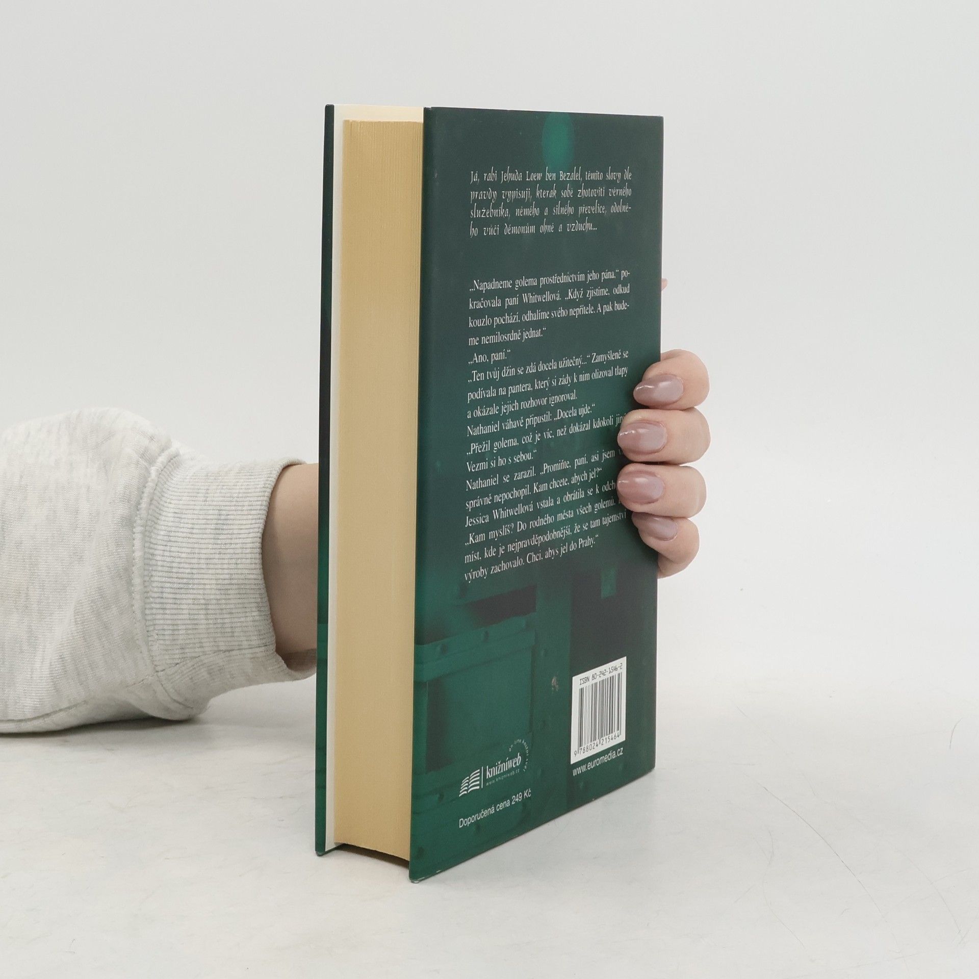 Postavy: Nathaniel (John Mandrake), Bartimaeus, Kitty, paní Whitwellová, Fred, Stanley, Henry Duvall, Jane Farrarová, Jakub, pan Pinn, pan Tallow, pan Devereaux, pan Pennyfeather, pan Makepeace… - Bartimaeus je zpátky! Stejně drzý, hádavý, smělý a vynalézavý jako dřív, a taky pořádně zuřivý, protože sice předpokládal, že se na něj za čas nějaký pitomec ve špičatém klobouku rozpomene a povolá ho na Zemi, aby ho mohl sekýrovat, ale fakt nečekal, že to bude stejný pitomec, jako posledně… Nathaniel se stal po vítězství na Lovelacem významným členem vlády, ale jeho pozice je hodně nejistá. Marně se snaží potlačit Odboj, který podniká stále odvážnější útoky proti mágům, a kromě toho začal Londýn pustošit další, velmi silný a zdánlivě nepolapitelný nepřítel… Kitty, členka odboje, která se kdysi krátce střetla s Bartimaem a Nathaniela připravila o jeho jasnovidecké zrcátko, má vzácnou schopnost - vrozenou odolnost proti magii. Ona a její přátelé plánují akci, která má mágům zasadit drtivou ránu, ale jejich protivníci jsou silnější, než čekali, a všude číhá zrada… Na londýnských náměstích i v pražských uličkách, v kancelářích Whitehallu i v kryptě hluboko pod zemí ohrožují naše hrdiny nejen démoni, politické intriky, členové Noční policie a vzájemná rivalita, ale také tajemný golem a šílený ífrit. Zdá se, že nadcházejí zajímavé časy.