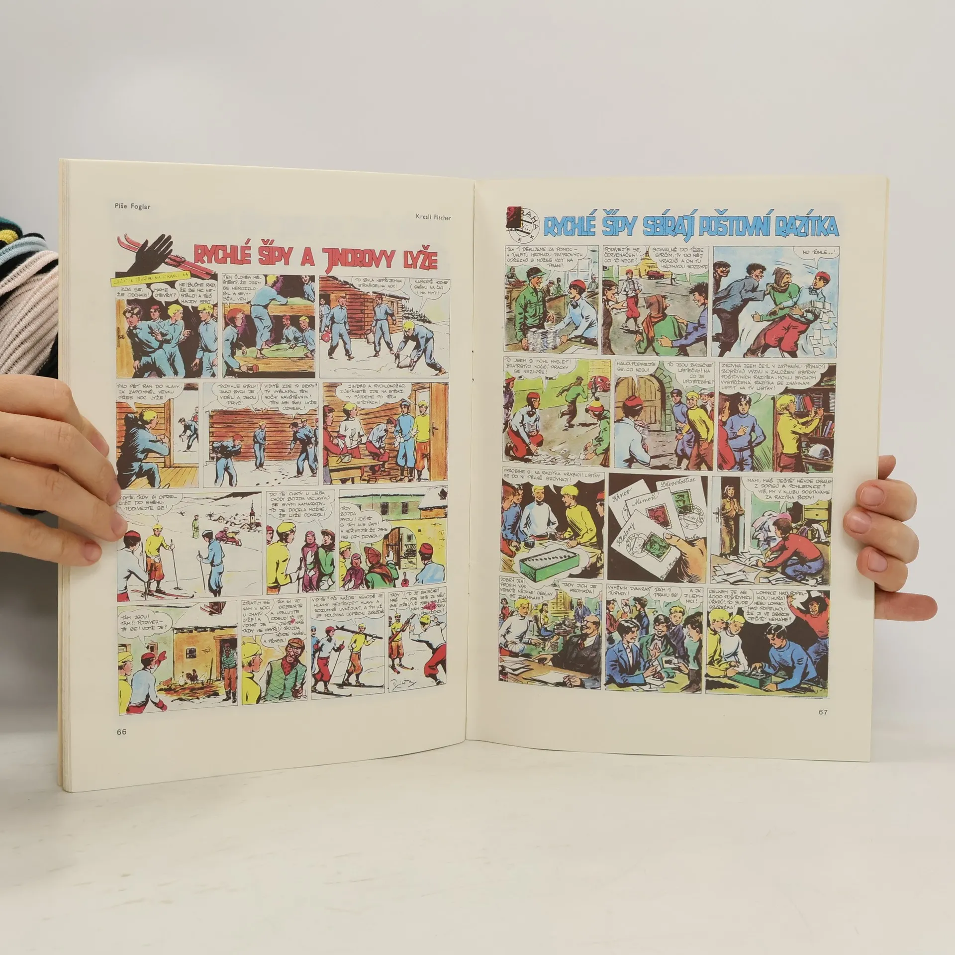 Obrázkový časopis pro chlapce a děvčata (1. ročník) Rychlé Šípy – Jaroslav Foglar, Jan Fisher Rychlé šípy se sázejí Rychlé šípy robí Šlapohyb Rychlé šípy závodí Mirek Dušín je odškodněn Rychlé šípy a Samoletka Rychlonožka v říši snů Rychlé šípy na Černém potoceRychlé šípy ve zbořeném mlýně Rychlé šípy na stopě tuláka Rychlé šípy zachraňují člověka Rychlé šípy modelaří Rychlé šípy a trosečníci Rychlé šípy na výpravě Rychlé šípy zachraňují kamaráda Rychlé šípy na sáňkařské závody Rychlé šípy dovedou prohrávat Rychlé šípy maminkám Rychlé šípy cvičí sebeovládání Rychlé šípy na pramici Rychlé šípy trestají piráty Rychlé šípy nalézají Pátka Rychlé šípy na prázdniny Rychlé šípy ztroskotají Rychlé šípy se předstihují