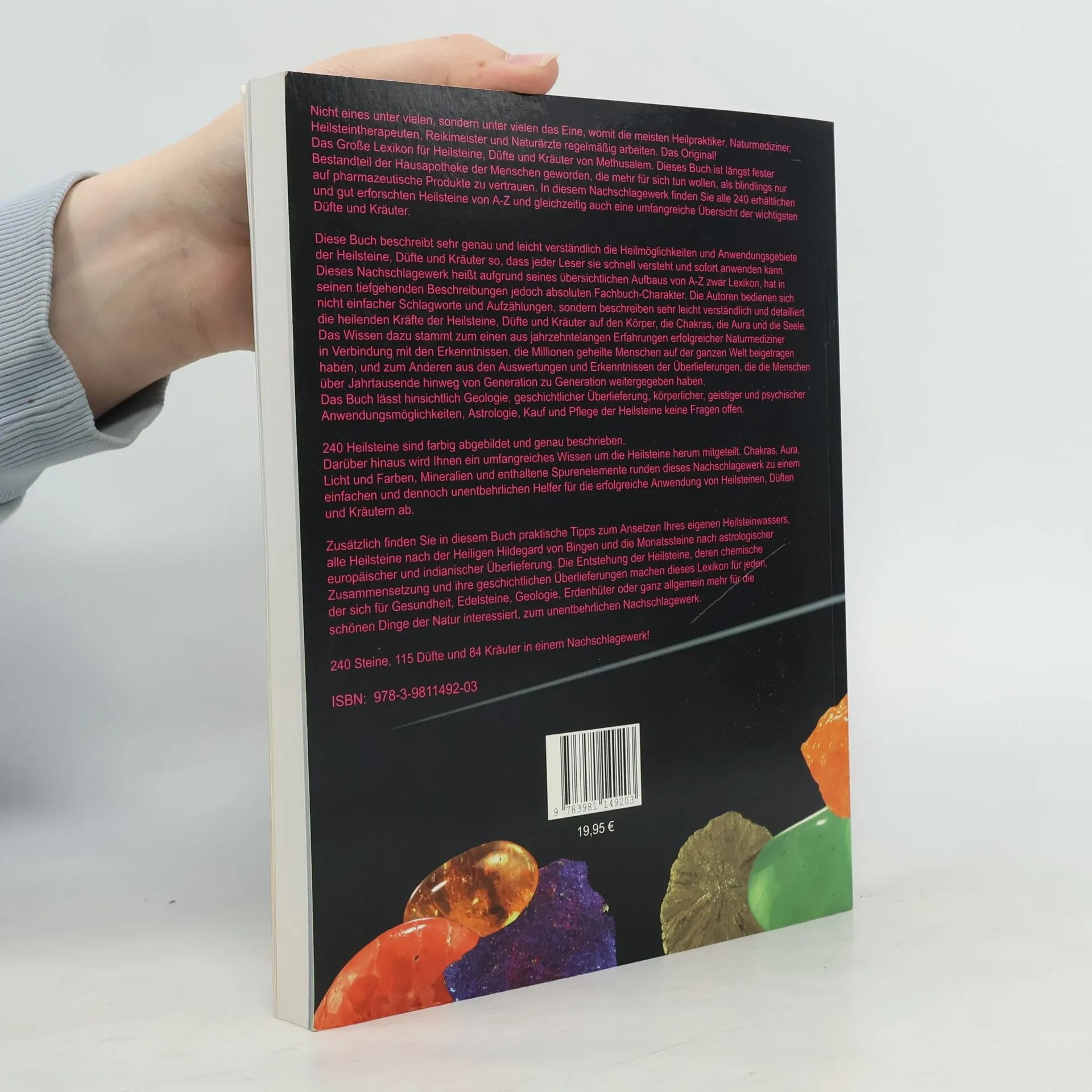 Dieses Buch bietet eine präzise und leicht verständliche Übersicht über die Heilmöglichkeiten und Anwendungsgebiete von Heilsteinen, Düften und Kräutern, ideal für Anfänger. Obwohl es als Lexikon von A bis Z strukturiert ist, hat es durch seine detaillierten Beschreibungen den Charakter eines Fachbuchs. Der Autor, basierend auf jahrzehntelanger Erfahrung, erläutert die heilenden Kräfte von Edelsteinen, Düften und Kräutern für Körper und Seele. Er deckt umfassend Aspekte wie Geologie, geschichtliche Überlieferungen, Anwendungen, Astrologie, Pflege und die Herstellung von Heilsteinwasser ab. 240 Steine sind farbig abgebildet und detailliert beschrieben. Zudem vermittelt das Werk umfangreiches Wissen über Chakras, Aura, Licht und Farben sowie Mineralien und Spurenelemente, was es zu einem unverzichtbaren Leitfaden für die Anwendung der Naturheilkunde macht. Auch die Heilsteine nach Hildegardscher Reihenfolge und die Monatssteine nach europäischer und indianischer Tradition sind enthalten. Die Entstehung, chemische Zusammensetzung und geschichtliche Überlieferung der Heilsteine machen dieses Nachschlagewerk zudem für Hobby-Mineralogen wertvoll. Es umfasst alle verfügbaren Heilsteine von A bis Z sowie 115 Düfte (ätherische Öle) und 84 Kräuter.