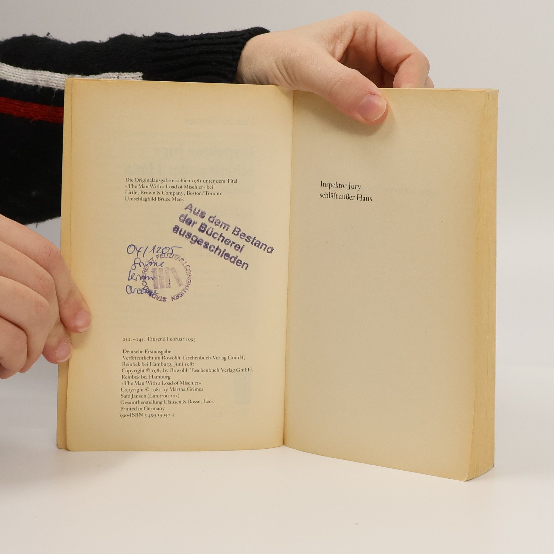 Inspektor Jury schläft außer Haus, Martha Grimes