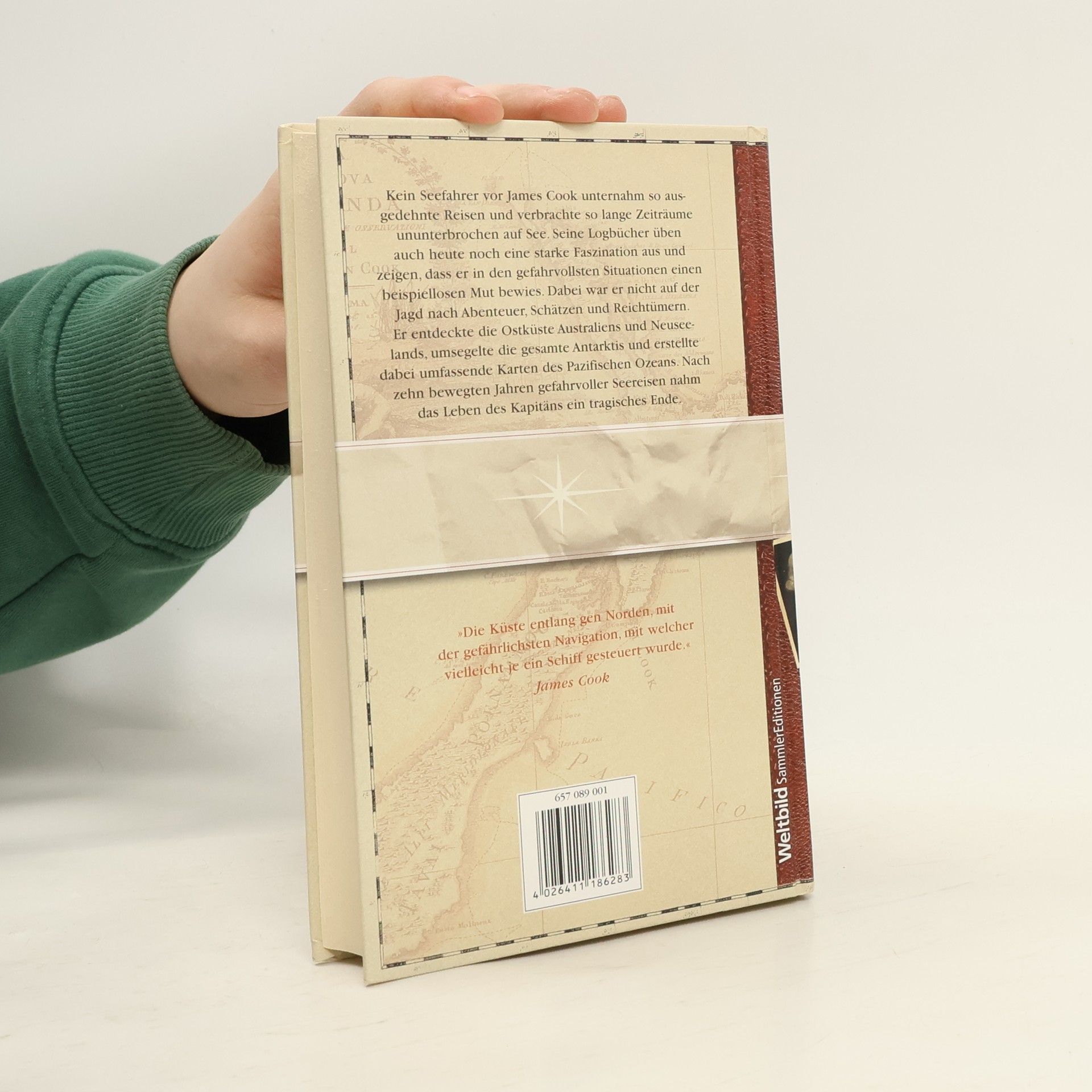 er erregenden, abenteuerlichen Erlebnisfülle nur den Fahrten des Columbus nach. Cook war der Navigator, der die weißen Flecken auf der Karte des Pazifischen Ozeans tilgte, er entdeckte die fruchtbaren Ostküsten Australiens und Neuseelands, Neukaledonien und Hawaii, bereiste weite Küstenstriche Alaskas, wagte sich in die Arktis und umsegelte die gesamte Antarktis, wodurch er den jahrhundertealten Mythos der riesigen, fruchtbaren terra australis gegenstandslos machte. Wir lesen heute, nach über zweihundert Jahren, seine umfangreichen, gewissenhaft geführten, jedoch sachlich knapp und unprätenziös berichtenden Logbücher mit atemloser Faszination.